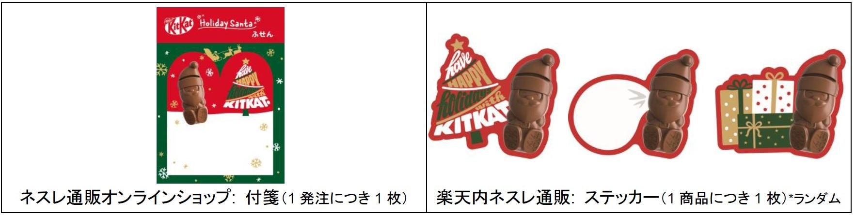 ネスレ通販オンラインショップもしくは、楽天内ネスレ通販で、「キットカット ホリデイサンタ」製品を10月29日(火)から11月4日(月)までの先行予約特典期間中に購入すると、予約特典が付きます。