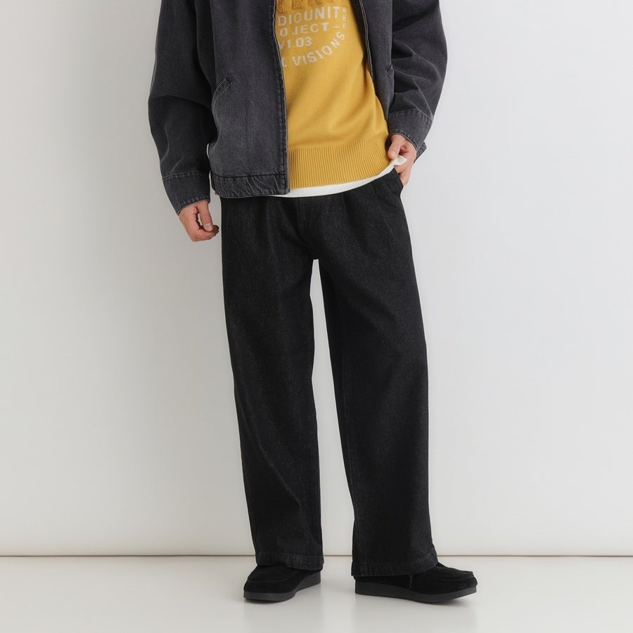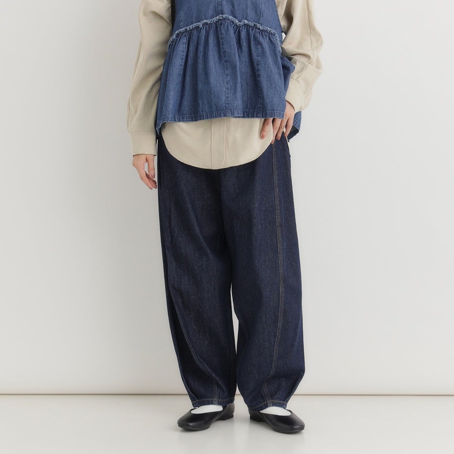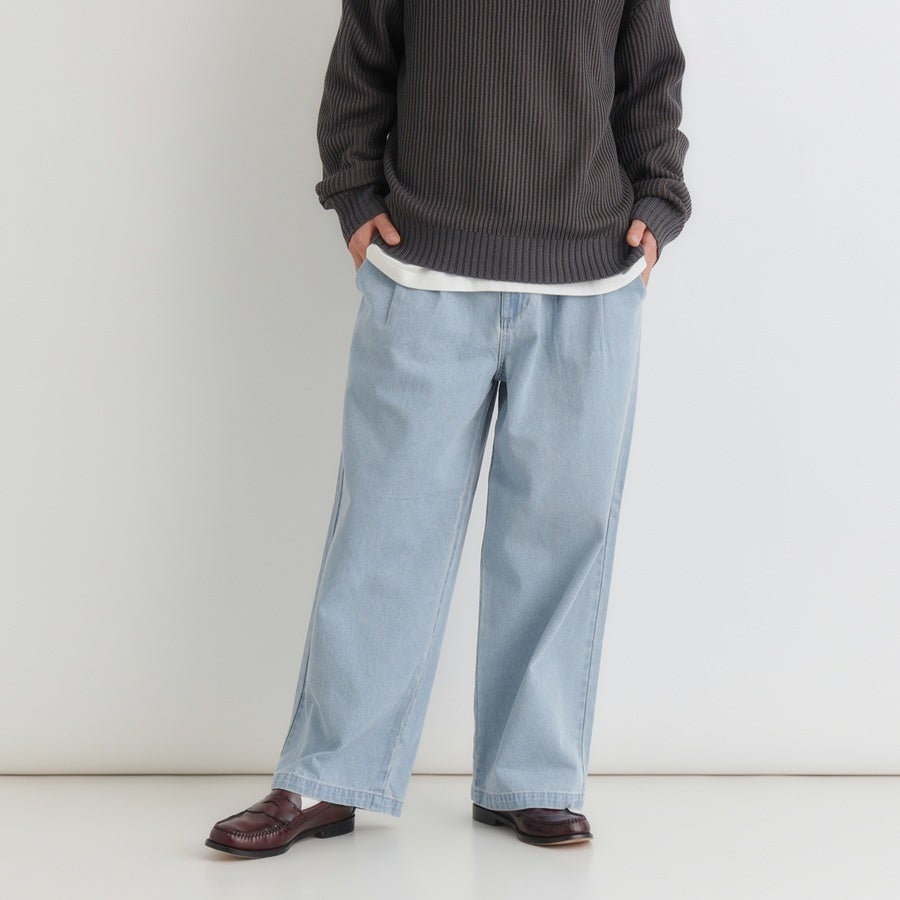 柔らかく適度な厚みを持った10オンスのデニム生地を使用し、しっかりとしたハリ感がありながら、動きやすさも考慮しています。すっきりと見える2タックがシンプルながらも奥行きのあるスタイルを実現します。