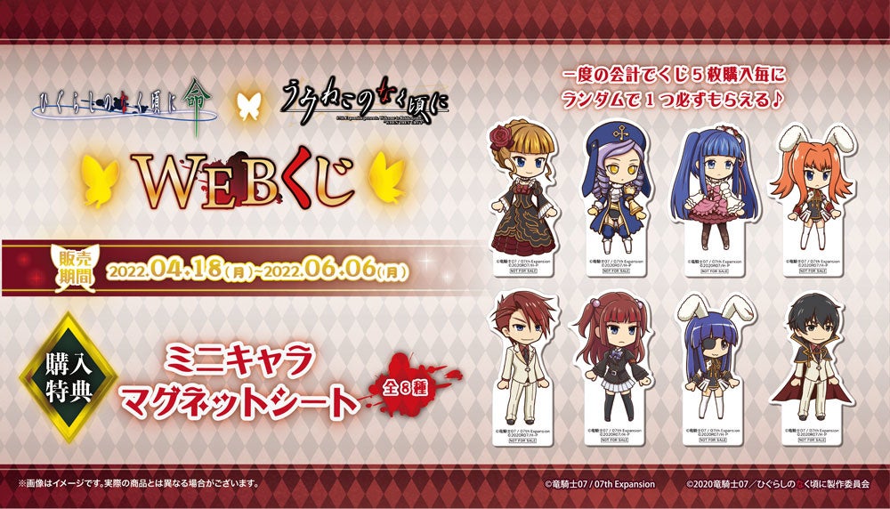 2022年4月18日より、「ひぐらしのなく頃に 命 × うみねこのなく頃に WEBくじ」の販売を開始いたしました。