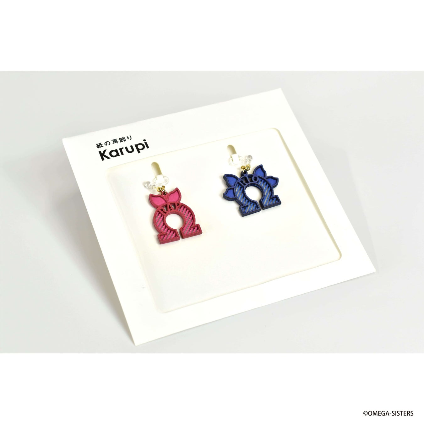 紙ピアス&イヤリングは“リボン”と“Ω”をモチーフにデザインされており、双子らしく「レイver.」と「リオver.」が左右1組になったセットアイテムです。