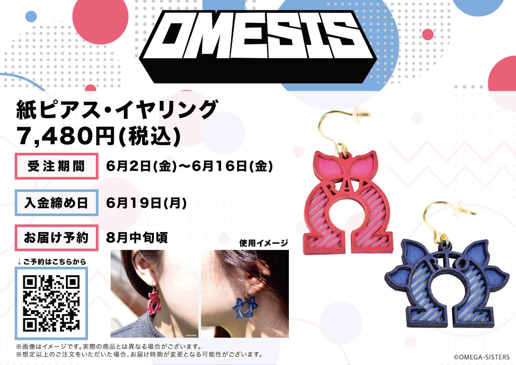 「おめがシスターズ」の紙ピアス&イヤリングが受注生産で販売されることが決定し、6月2日~16日の期間限定でeeo Store(通販)にて予約受付スタート!