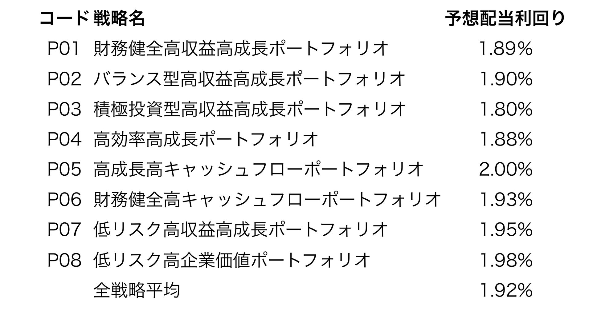 9月は中間決算の企業が多いため、9月27日の配当落ちにより中間配当分が運用損益額から一時的に減少いたします。しかし、2ヵ月~3ヵ月後には、ご指定頂いた配当金受け取り口座へ以下の予想配当利回りに基づく配当金が振り込まれます。各戦略ごとの9月の予想配当利回りをご報告します。