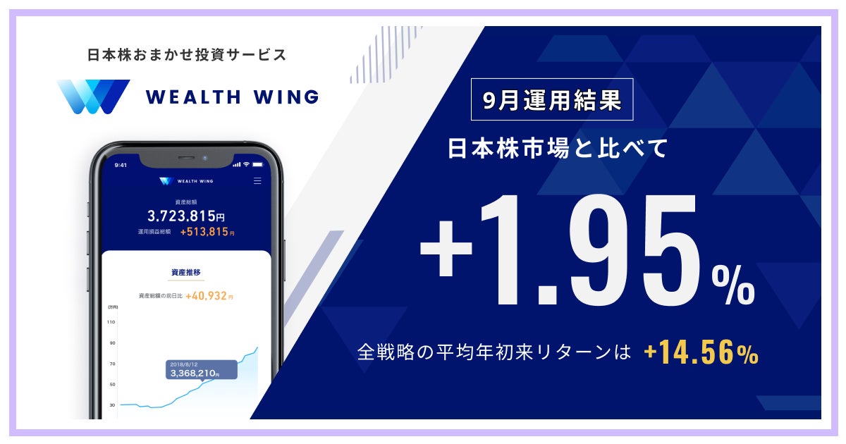 Finatextグループの日本株おまかせ投資サービス「Wealth Wing(ウェルスウイング)」、2024年9月の運用結果は日本株市場を1.95%上回る