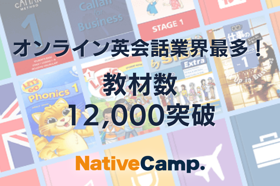 オンライン英会話アプリ「ネイティブキャンプ英会話」を展開する株式会社ネイティブキャンプ(東京都渋谷区 代表取締役:谷川国洋)は、総教材数が国内のオンライン英会話サービス業界最多(*)の12,000を突破いたしました。
