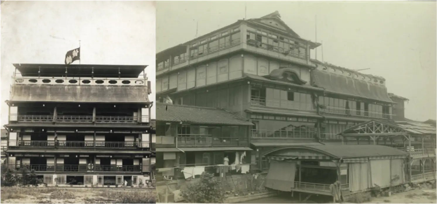明治3年(1870年)創業の元老舗料理旅館。現在の建物は大正14年(1925年)に竣工。昭和9年(1934年)に増築されました。純和風の五層楼閣建築で現在は国登録有形文化財となっています。