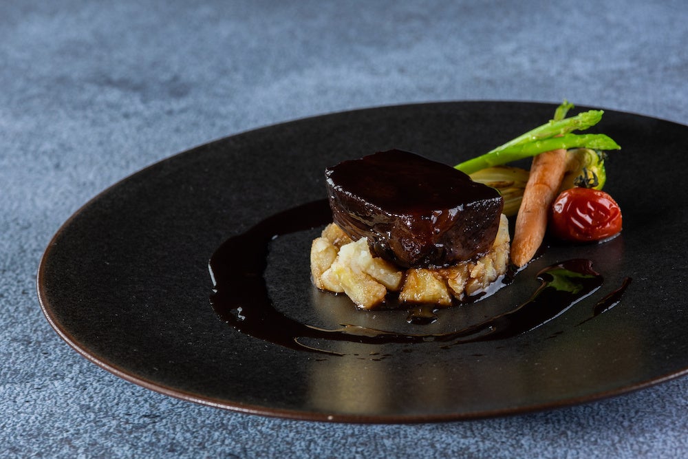 ・シェフこだわり黒毛和牛煮込みのメイン+乾杯ロゼスパークリング付
