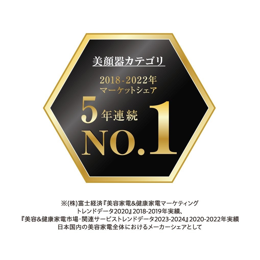 *1 (株)富士経済『美容家電&健康家電マーケティングトレンドデータ2020』2018-2019年実績、『美容&健康家電市場・関連サービストレンドデータ2023-2024』2020-2022年実績、美顔器カテゴリにおいて日本国内の美容家電全体におけるメーカーシェアとして