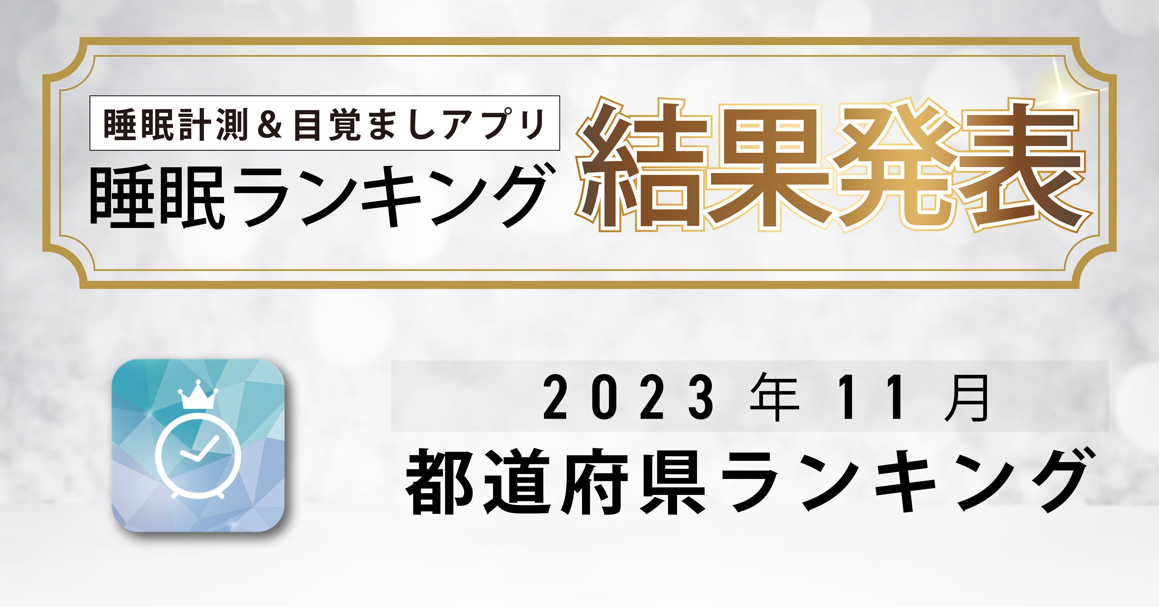 2023年11月1日~11月30日における「睡眠ランキング」の都道府県ランキングを発表します。
