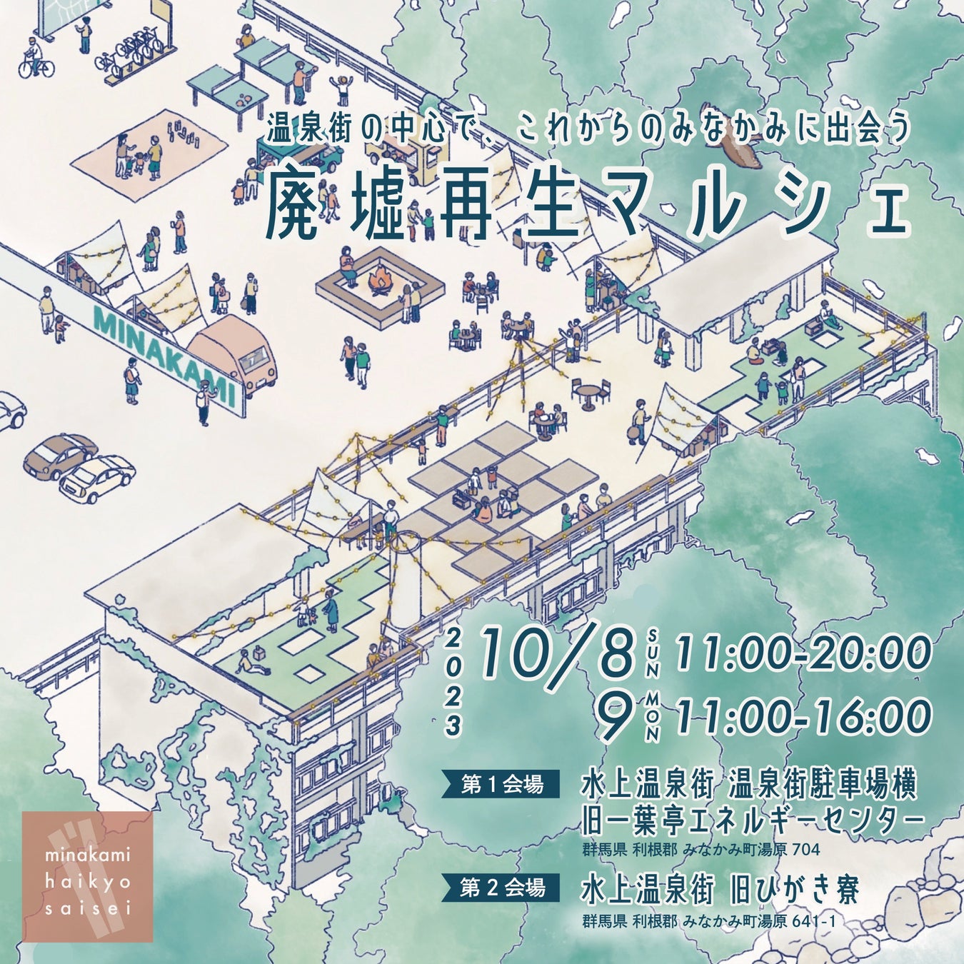 当社は、2021年9月より始動した、みなかみ町・株式会社群馬銀行・国立大学法人東京大学大学院工学系研究科と連携して進める「産官学金連携まちづくり」事業に参加しております。2022年10月の旧ひがき寮での「ミニ廃墟再生マルシェ」、2023年6月の地元意見交換会に続き、今後も住民の方々を積極的に巻き込みながらアクションを重ね、温泉街の再生ビジョンを共につくりあげていく予定です。今回の「廃墟再⽣マルシェ」も廃墟を再生しながら温泉街の未来を描く、ひとつの社会実験として開催します。みなかみ町の魅力を感じて都心部との二地域居住をしている方や都心部から移住した方も出店いただく予定です。