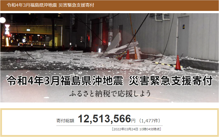 さとふる、「令和4年3月福島県沖地震 災害緊急支援寄付サイト」で新たに岩手県野田村、宮城県多賀城市の寄付受け付けを開始