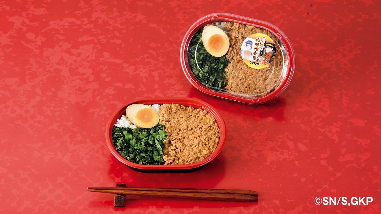 作中とも繋がりが深いアイテム「味噌」を使った、肉味噌と味付玉子、野沢菜漬けをトッピングしたお弁当です。