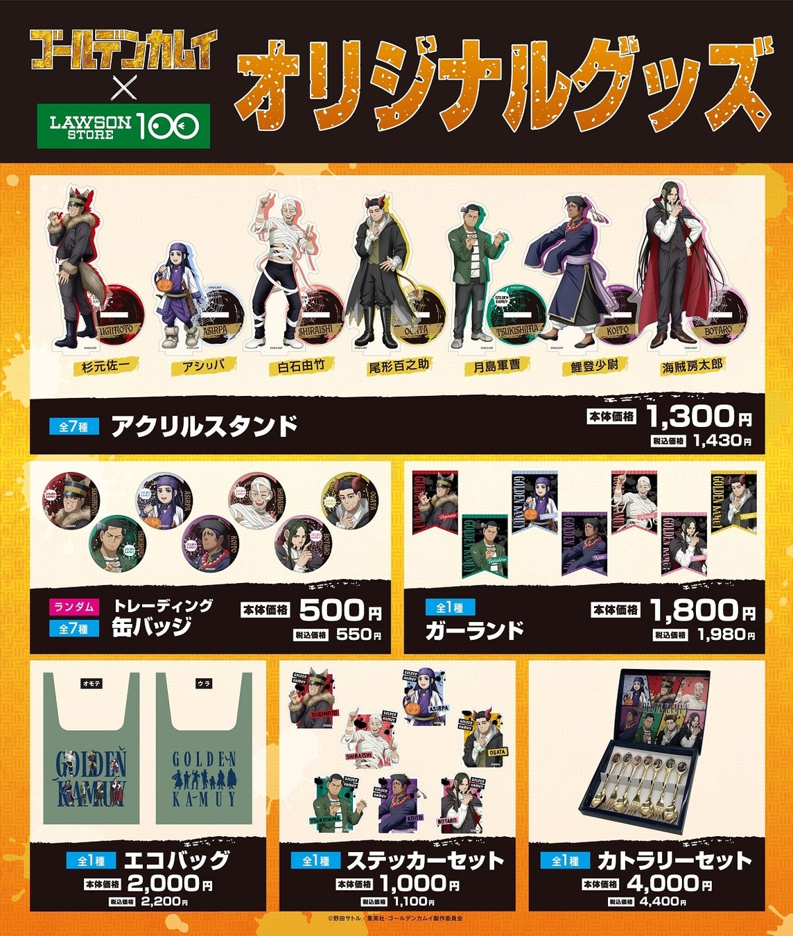 TVアニメ『ゴールデンカムイ』×ローソンストア100のオリジナルグッズも店舗にて販売します。
