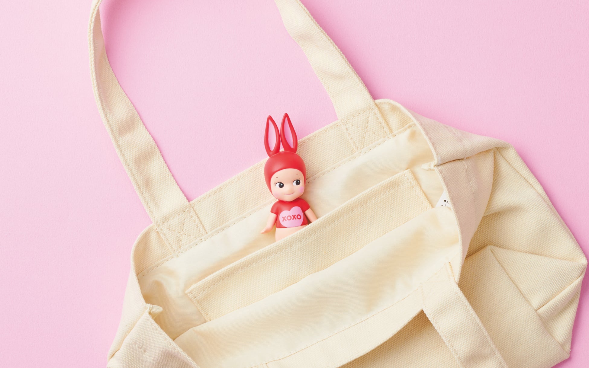 相良刺繍をほどこしたランチトートバッグも同時発売。日常使いしやすい便利なサイズで、ミニフィギュアチャームを取り付ければさらに魅力がアップします。このバッグでSonny Angelと一緒にお出かけしてみませんか?