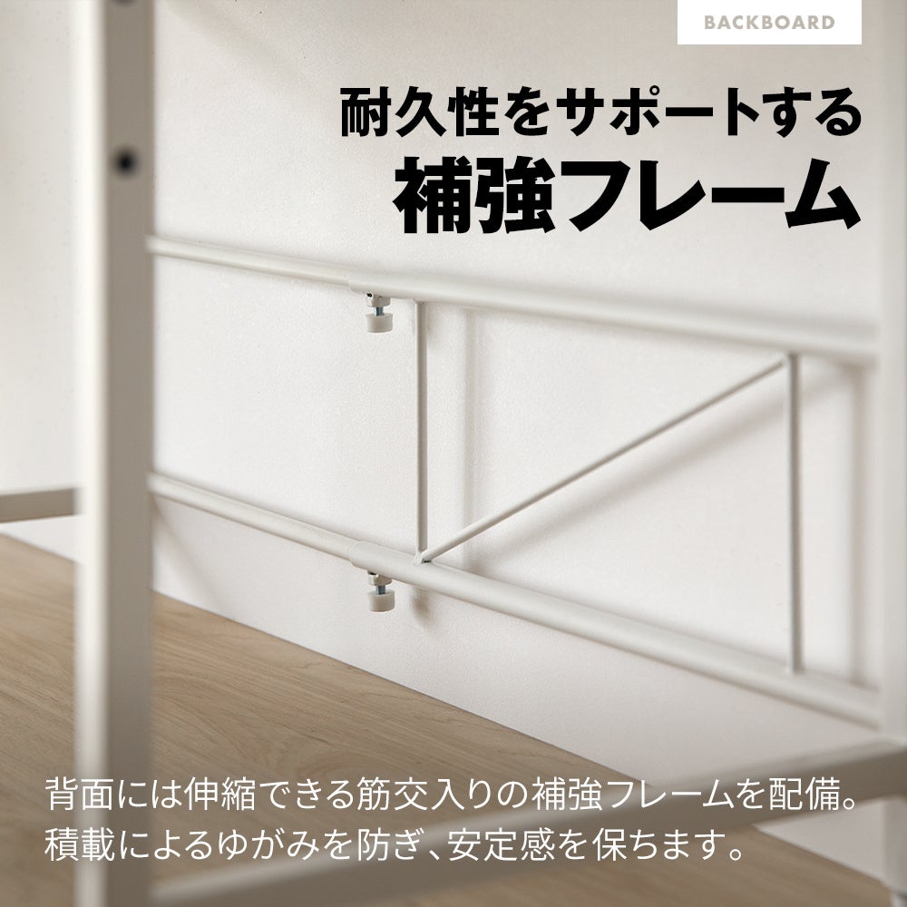 可動棚2枚と棚の可動位置8段階でレイアウト自在
