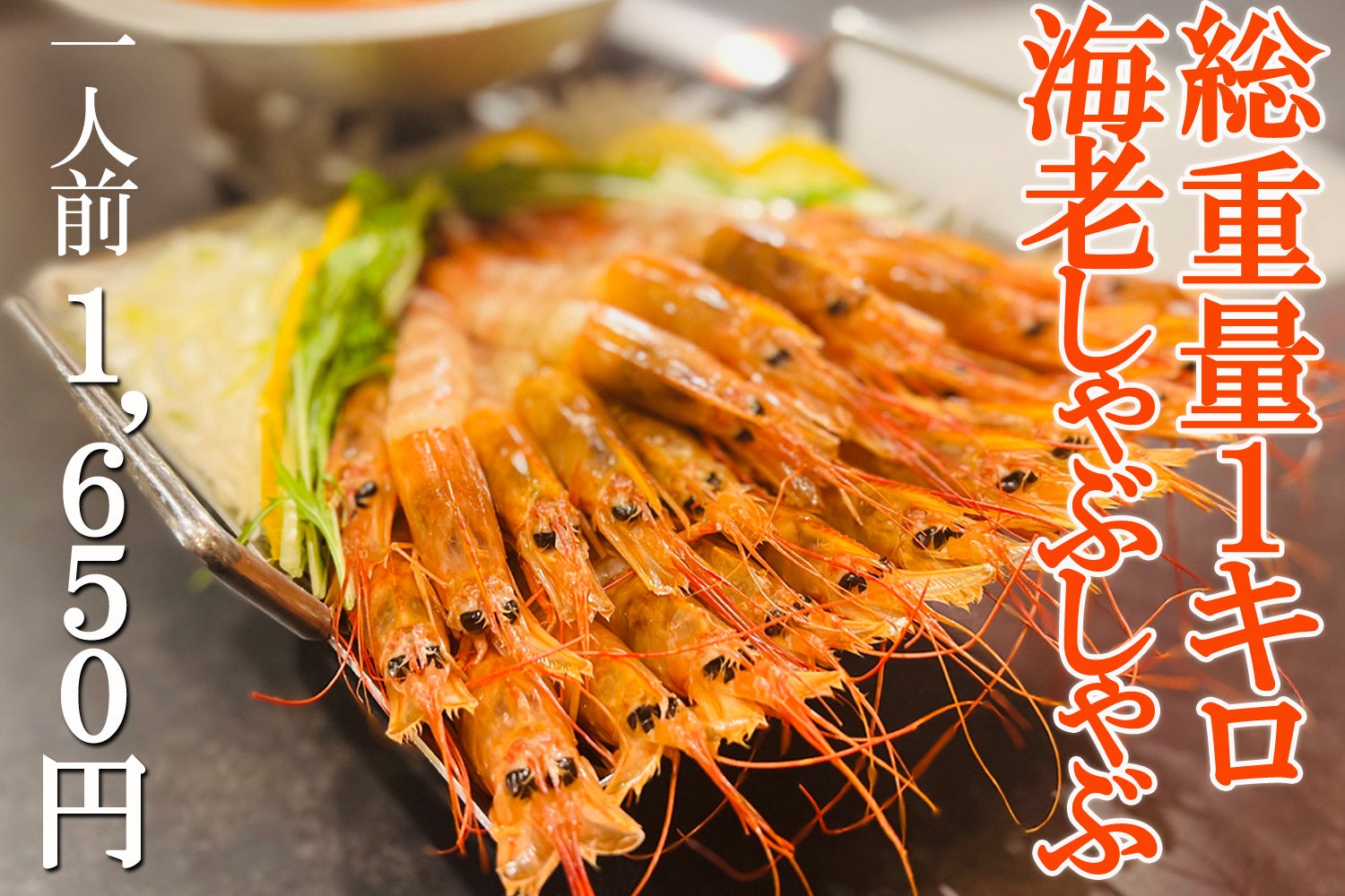 総重量1キロ!!旨味たっぷりの海老しゃぶしゃぶが1人前1650円!!衝撃の重量感と食べ応えを堪能ください♪