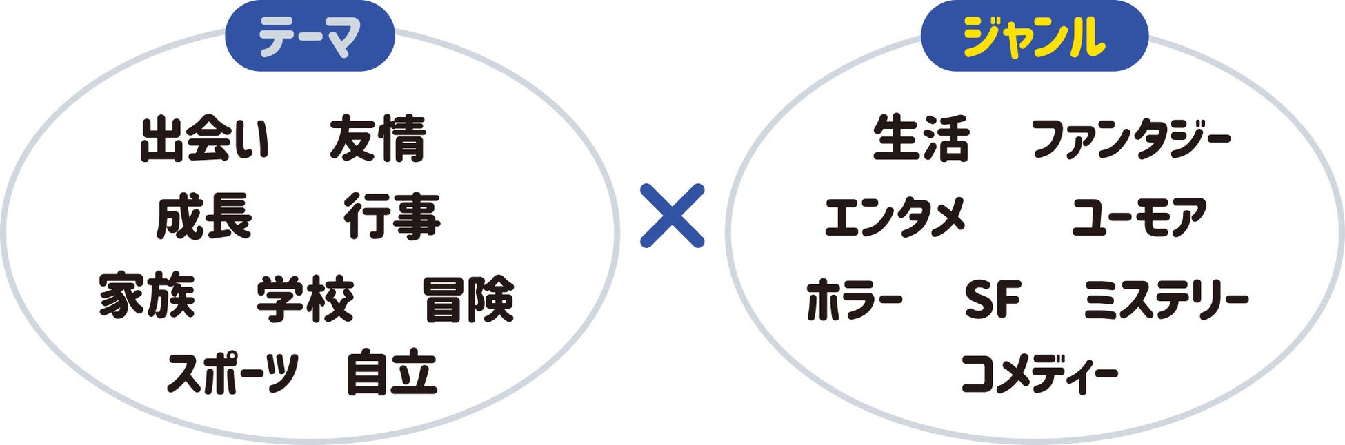 「出会い×ファンタジー」「友情×ミステリー」など、テーマとジャンルを各巻に記載。自分の興味・関心にあった本が選びやすく、自分にぴったりの1冊を選ぶ楽しみを体験できます!
