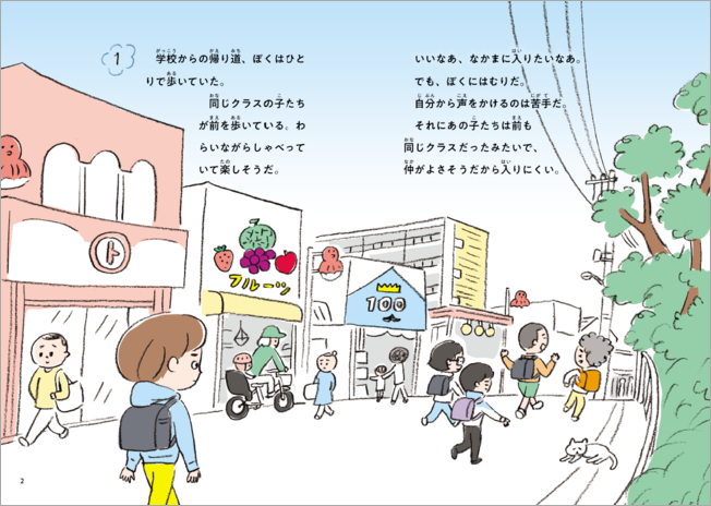 イラストのないページが1ページもないほど、イラストがたっぷりとオールカラーで掲載されています。漢字にはすべてふりがなが付いているので、習っていない漢字が出てきてもすいすい読めます! はじめての一人読みにもぴったりです。