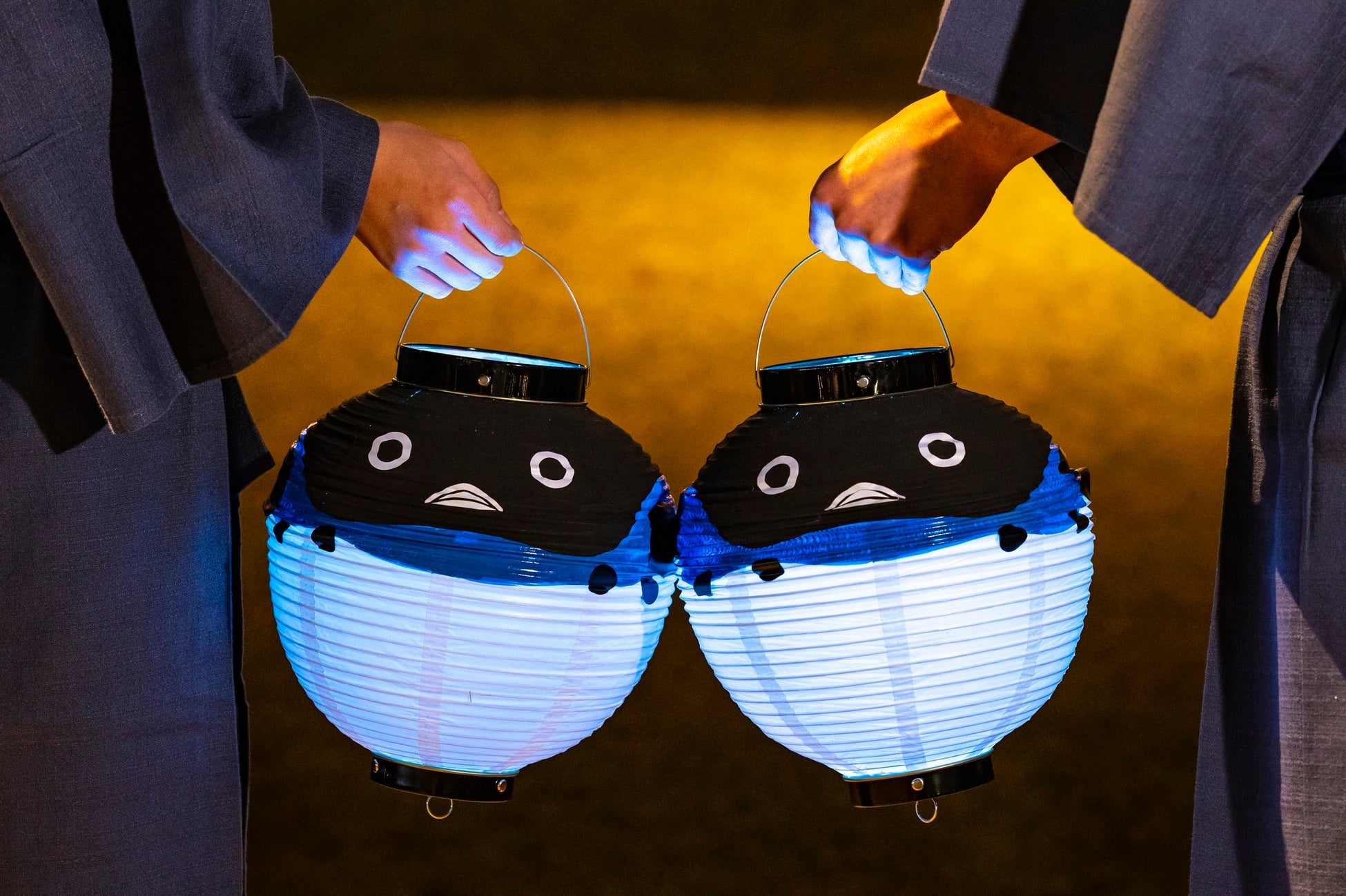 みやぐりんをそぞろ歩きする際のレンタルアイテムとして、ふぐの形をしたオリジナルの提灯を用意します。周囲を明るく照らしてくれるふぐ提灯はそぞろ歩きの必須アイテム。キュートなおちょぼ口が特徴のふぐ提灯は、眺めるだけでも癒されること間違いなしです。提灯は丸々としていて存在感があり、提灯を手にするする人が増えると、ふぐがみやぐりんを泳いでいるような光景が楽しめます。