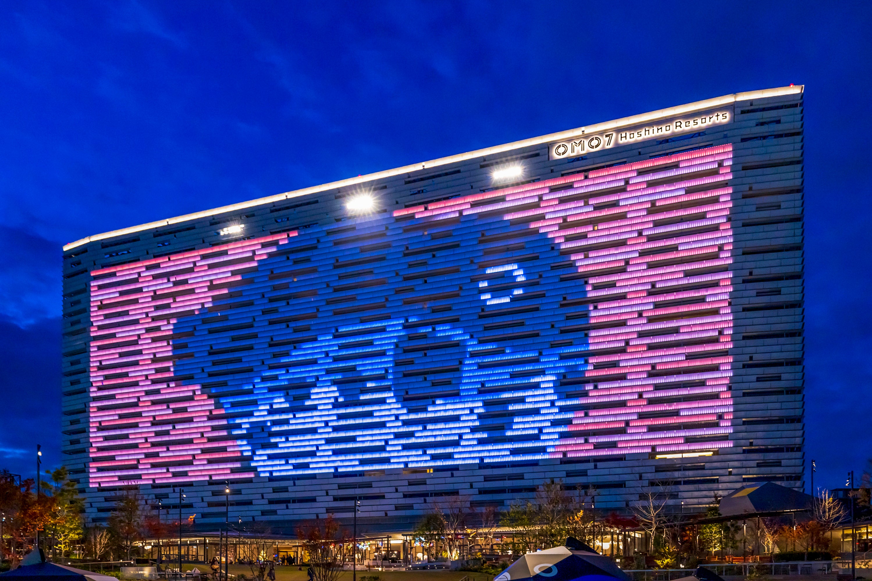 5 ホテルの外装膜に浮かびあがる「PIKAPIKA ふぐナイトショー」