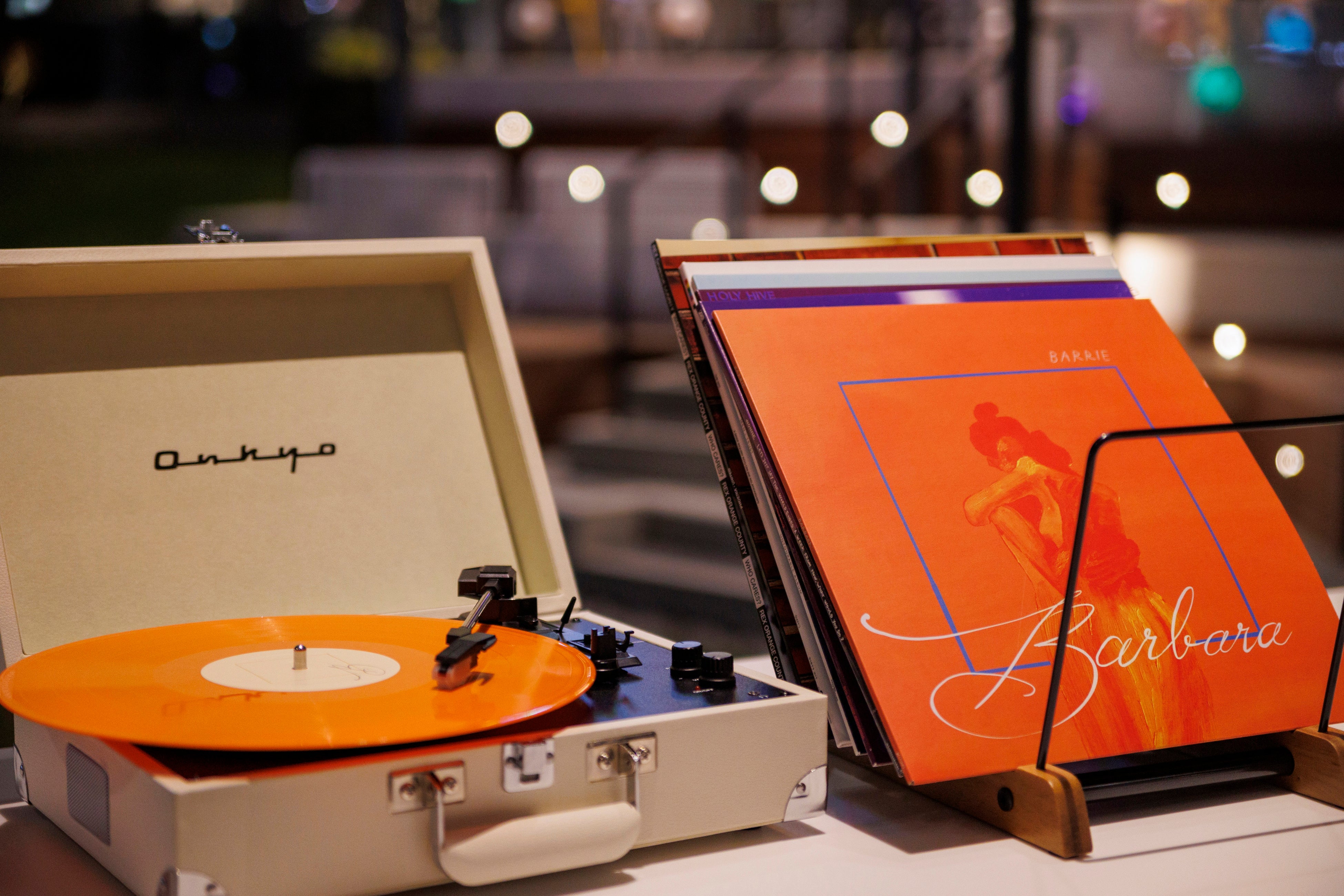 みやぐりん内、レコードプレーヤーと、レコードショップの店主さんがセレクトしたレコードを設置します。年齢も趣向も異なるレコードショップの店主が選んだ「大阪」をイメージした曲が揃っており、お客様自身で好みのレコードを流せます。用意しているレコードはそれぞれ異なる曲のため、煌めくネオンアートを見ながら巡って、お気に入りを見つけるのもおすすめです。