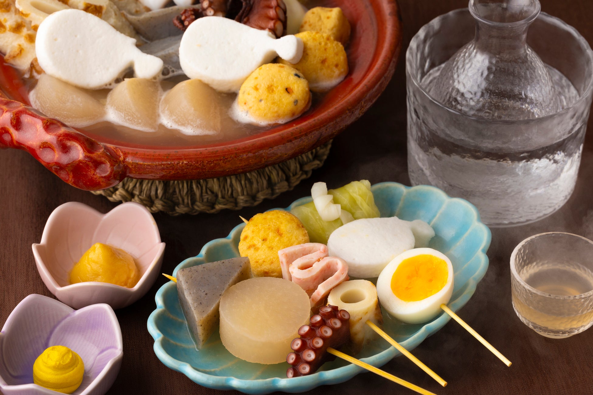 冬の定番グルメといえばおでん。ふぐのだしで煮込んだ「ふぐおでん」を提供します。大根やこんにゃくなど定番のおでんの具材に加え、ふぐの練り物が入っており、ふぐづくしの贅沢なおでんに!さらに、おでんのお供には、日本酒とふぐおでんのだしをあわせて楽しむ「ふぐおでんのだし割り」がおすすめ。熱々のふぐおでんとだし割りで温まることができます。