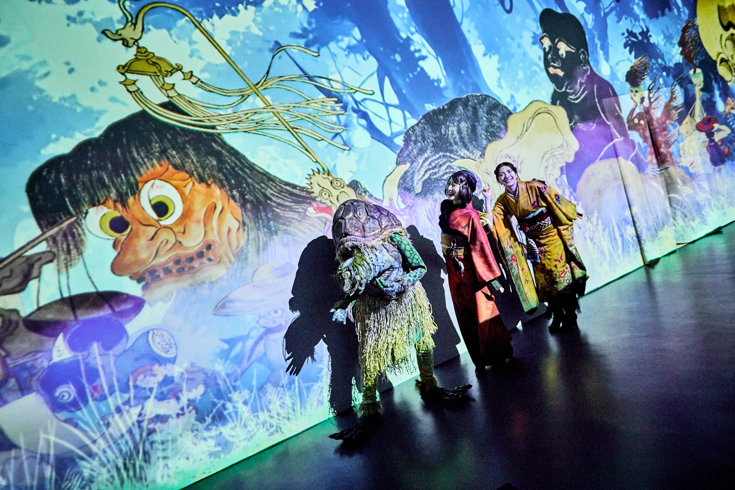 江戸・明治時代など様々な絵師によって描かれた「百鬼夜行絵巻」「百物語」「鬼」「天狗」「河童」「付喪神」などの日本が誇る妖怪美術に最先端の映像技術と立体造形で没入できる世界初のイマーシブ体感型デジタルアートミュージアムです。