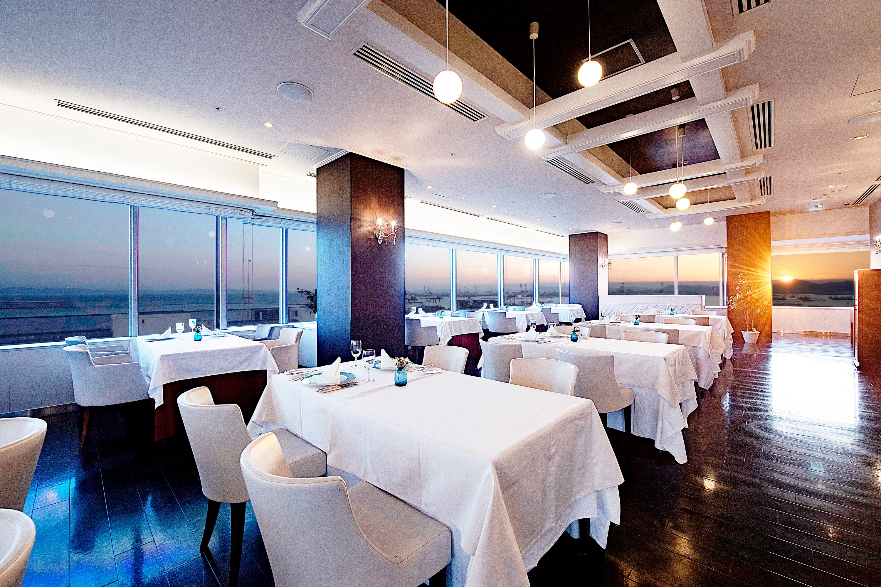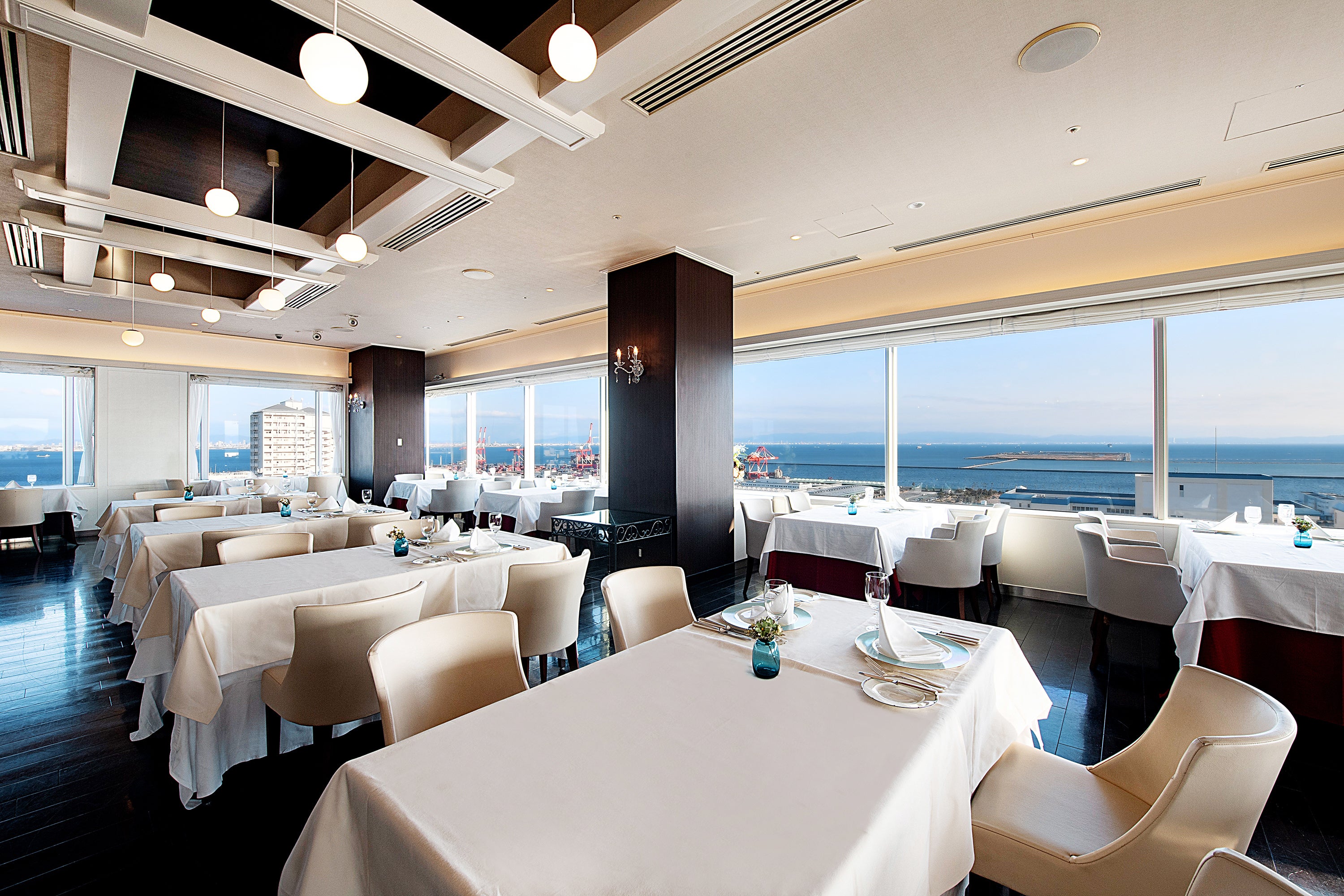 ホテルプラザ神戸最上階に位置し、海の風景を満喫できるメインダイニングです。