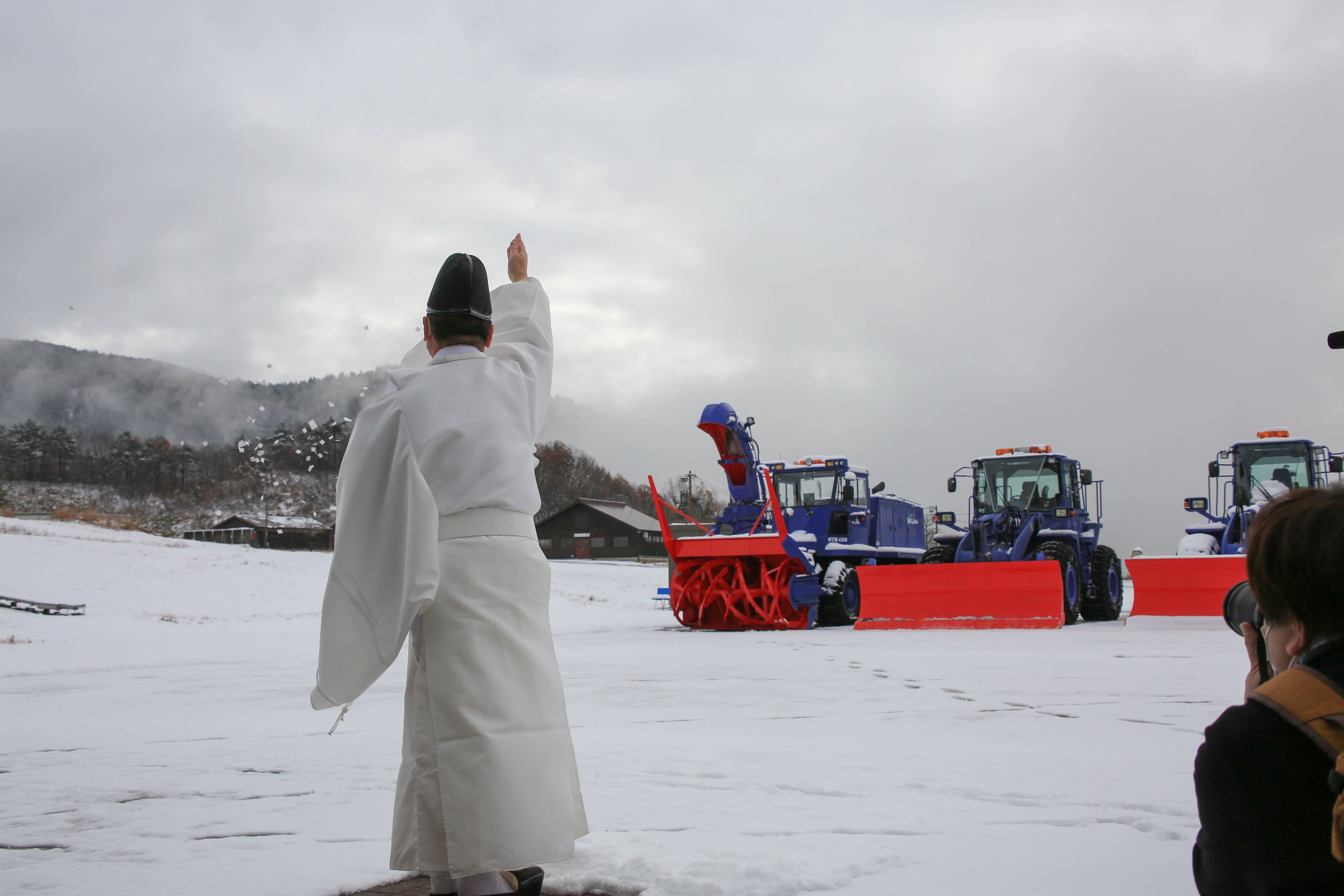 今回、勝山新明神社 天立 雅浩(あまだて まさひろ)宮司様による祝詞奏上(のりとそうじょう)、圧雪車両やゲレンデのお祓いを行う清祓の儀(きよめはらいのぎ)など、神事の様子を間近で取材いただける機会を設けましたのでぜひご参加ください。