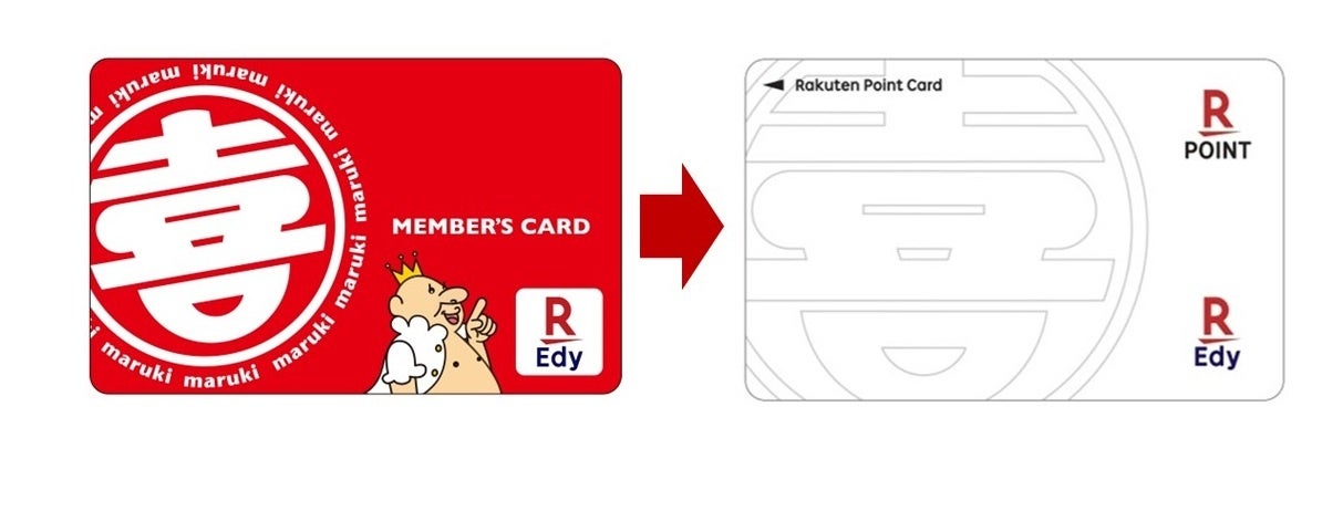 また、丸喜は、楽天Edy株式会社(以下「楽天Edy」)と提携し発行していたIC型電子マネー「まるきEdyカード」のサービスを終了し、「楽天ポイントカード」と「楽天Edy」機能を搭載したオリジナルデザインの「まるきEdy-楽天ポイントカード」へ2024年春頃より順次切り替えを行います。
