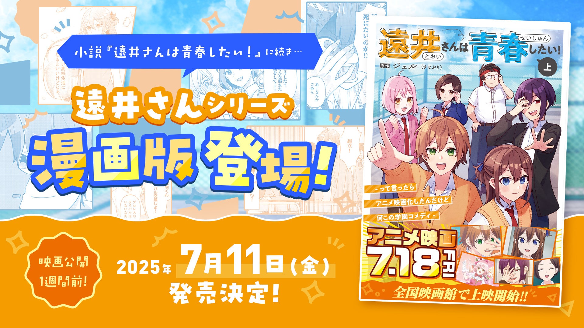 このたび、この映画公開直前となる2025年7月11日(金)に、漫画版『遠井さんは青春したい! -って言ったらアニメ映画化したんだけど何この学園コメディ-(上)』の発売が決定いたしました。