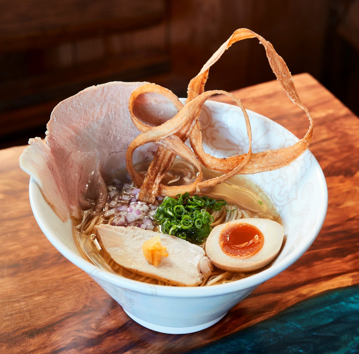 鶏スープに柚子を利かせた看板商品の「塩とりそば」。地元の方のみならず、県外からも多くの方がその味を求めて来店するというほどの人気店です。