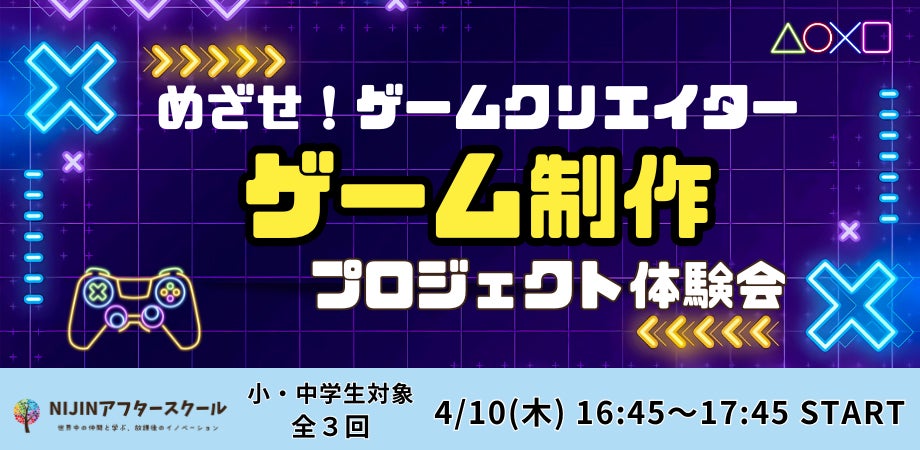 株式会社NIJIN(本社:東京都江東区、代表取締役:星野達郎)が運営する小中学生を対象としたオンラインアフタースクール『NIJINアフタースクール』では、子どもたち主体のゲーム制作プロジェクト体験会を4月10日(木)から開催いたします。
