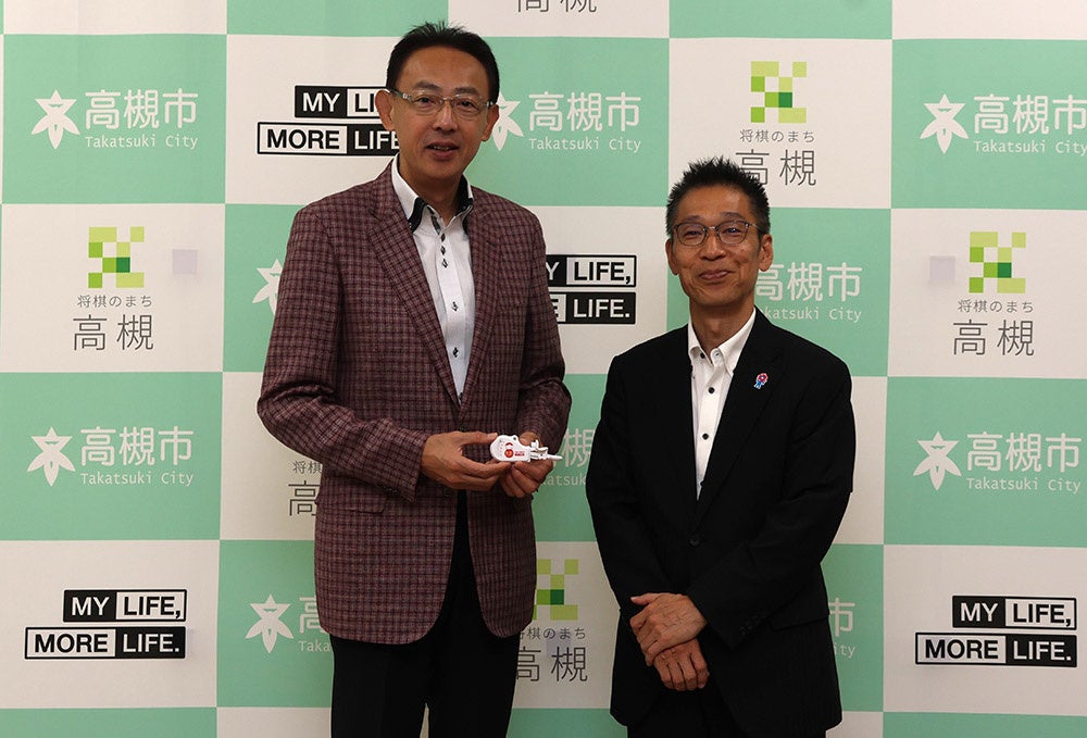 この寄贈は、Daigasグループが「地域社会のさまざまな問題の解決に自らの意思で積極的に取り組む」という社内理念のもと、昭和56年から40年以上にわたり実施しているボランティア活動「小さな灯運動」の一環で行われたもの。同活動により、高槻市に対し平成27年度からデジタル握力計や口腔機能測定器のほか、屋外の体操教室などで活用できる拡声器やBluetoothスピーカーなどの寄贈を受けています。今回、同グループから寄贈を受けたのは、舌の筋力測定器2台。舌の筋力測定を行い数値化することで、高齢化に伴う舌の筋力低下を認識でき、筋力低下によって口内の機能が衰えた状態の「オーラルフレイル」予防の啓発につながります。この日、市役所を訪れた大阪・北部地区統括支配人の大黒賢宏さんは「市民の皆さまの健康づくりにお役に立てていただければと思います」と話し、濱田市長は「ご寄贈ありがとうございます。介護予防の普及啓発イベントなどで使用していきたいと思います」と感謝を述べました。寄贈された筋力測定器は、市民の健康寿命延伸を目的とした健康づくり施策の一つである介護予防教室や高齢者対象のイベントなどでの普及啓発活動に活用します。