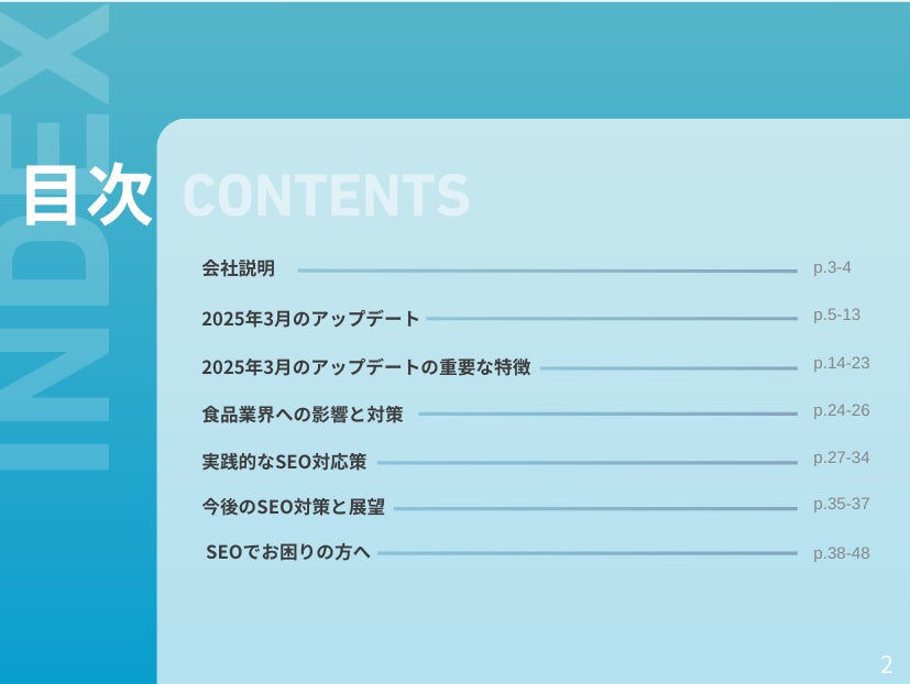 株式会社ベクトル(本社:東京都港区、代表取締役会長兼社長:西江 肇司、東証プライム:6058)の子会社であるOwned株式会社(東京都品川区、代表取締役社長、石井翔、以下「当社」)は、食品業界向けに「Googleアップデートによる分析レポート」の2025年3月版(全48ページ)を無料公開いたしました。