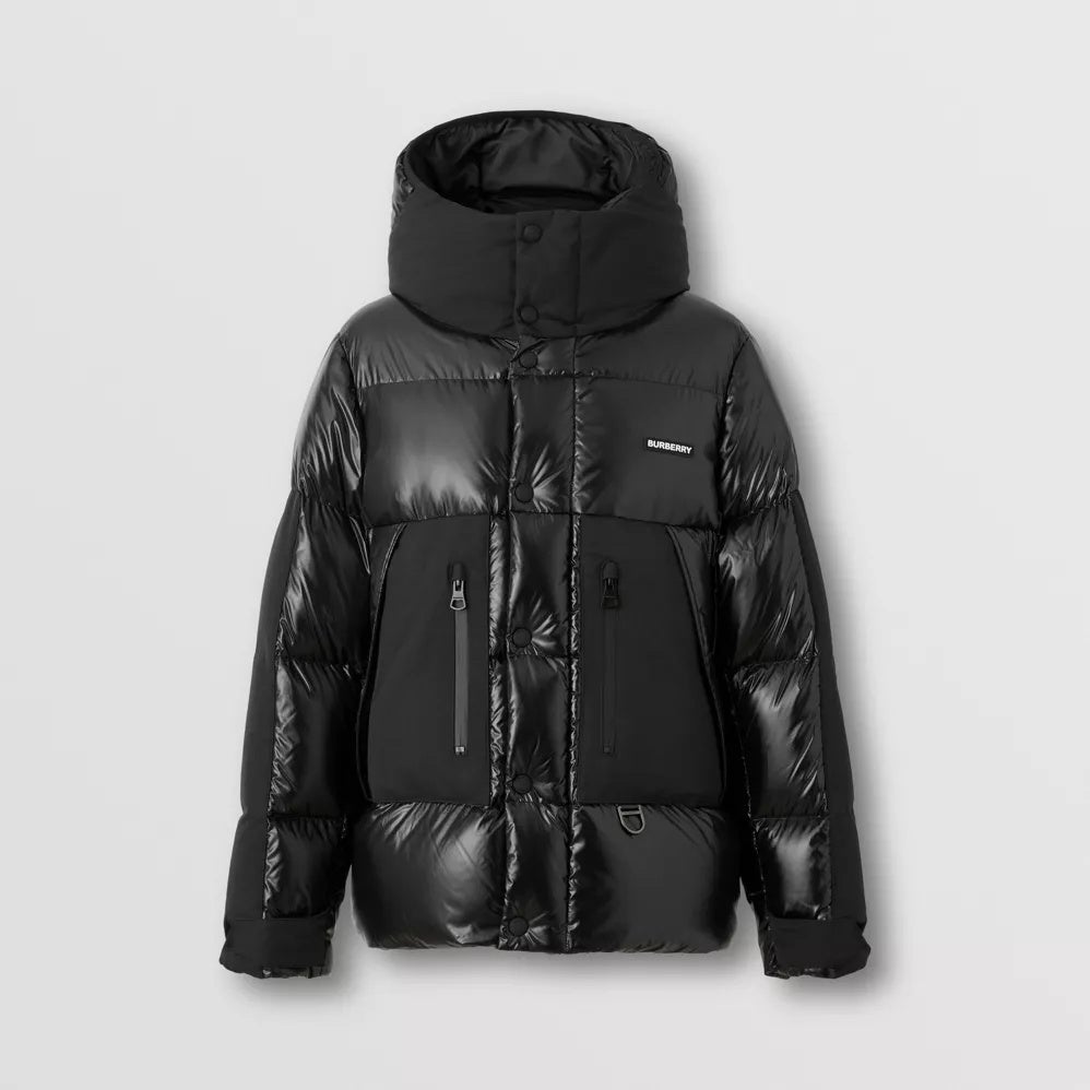 アウターウェアコレクションには、アウトドアから街中の探検まで、さまざまな冒険をナビゲートするためにデザインされたテクニカルなアイテムが揃いました。バーバリーチェックの最新パターンとして登場した新作のBurberry Night Check(バーバリー ナイトチェック)は、白い星がダークチャコールブルーの夜空に明るく輝いているような配色で、バーバリーの自然界への愛情を表現しています。軽量のテクニカルスタイルには、オプティックホワイトとダークチャコールブルーのコントラストを効かせたカラーブロックのナイロンジャケットや、ホースフェリープリントをあしらったオーバーサイズパーカーが登場。また、ハウスチェックにも再解釈が加えられ、軽量のボマージャケットからパファーコートまで、キルティングを施したアウターウェアのスタイルに立体的なパターンとしてあしらわれています。