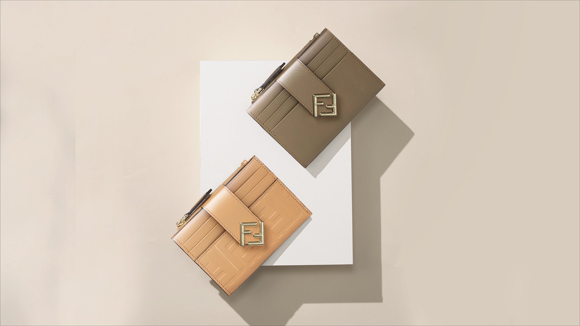 ダイアゴナルに施された、アイコニックな「FF」ロゴのクロージャーが特徴の「FF ダイアモンド(FF DIAMOND)」コレクションのウィメンズウォレット。ラグジュアリーなカーフレザーに2024-25年秋冬 コレクションのカラーパレットであるグリーン、ブラウンライトブルーの新色を組み合わせました。カードケースには、4つのカードスロットとフラットデザインのジップコインケースを備え、三つ折りウォレットには、6つのカードスロット、紙幣用コンパートメント、スナップボタン付きコインポケットを備えており持ち運びに便利なサイズ感と機能性に優れたデザインとなっています。
