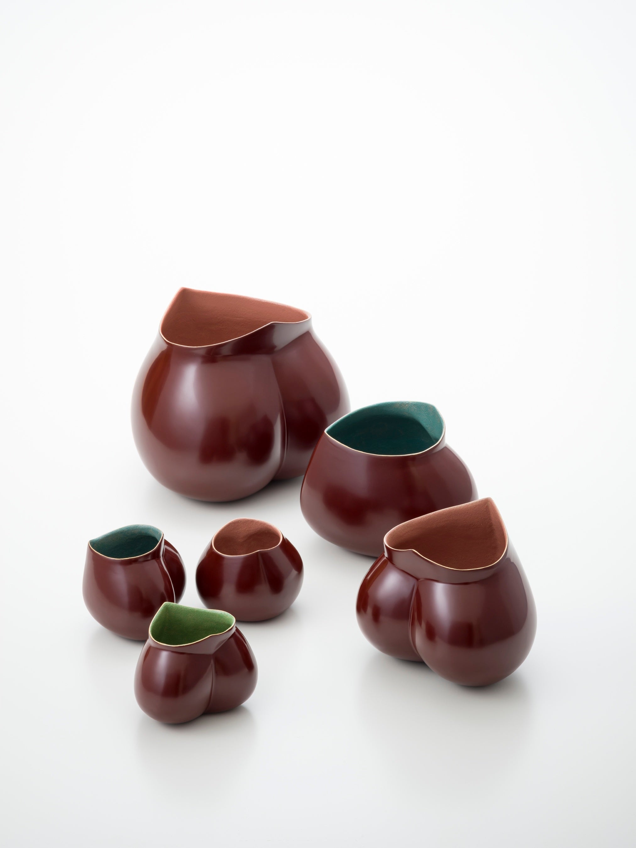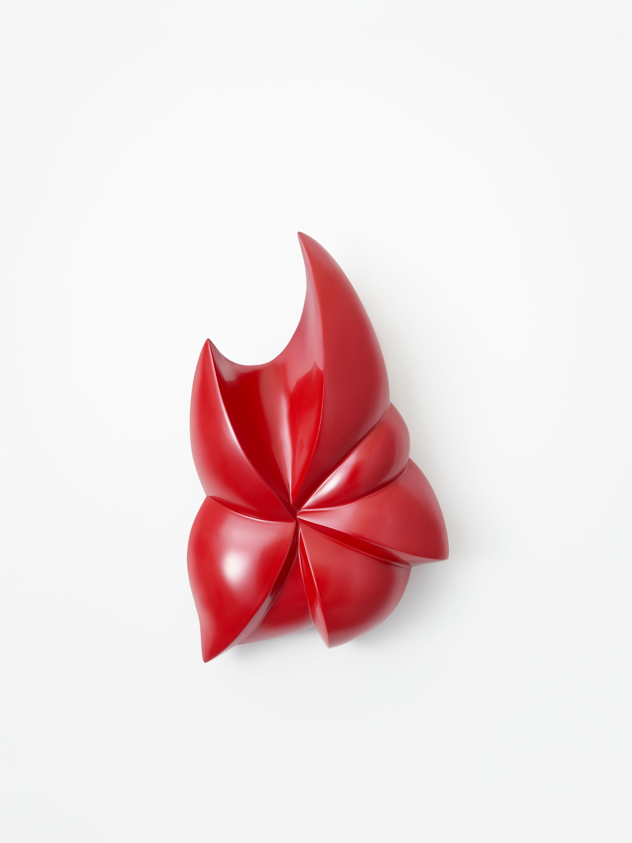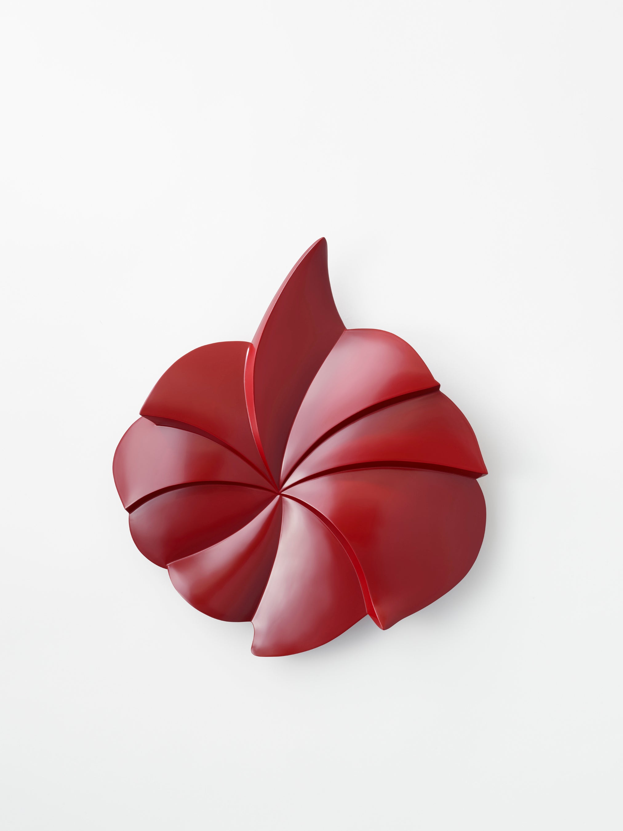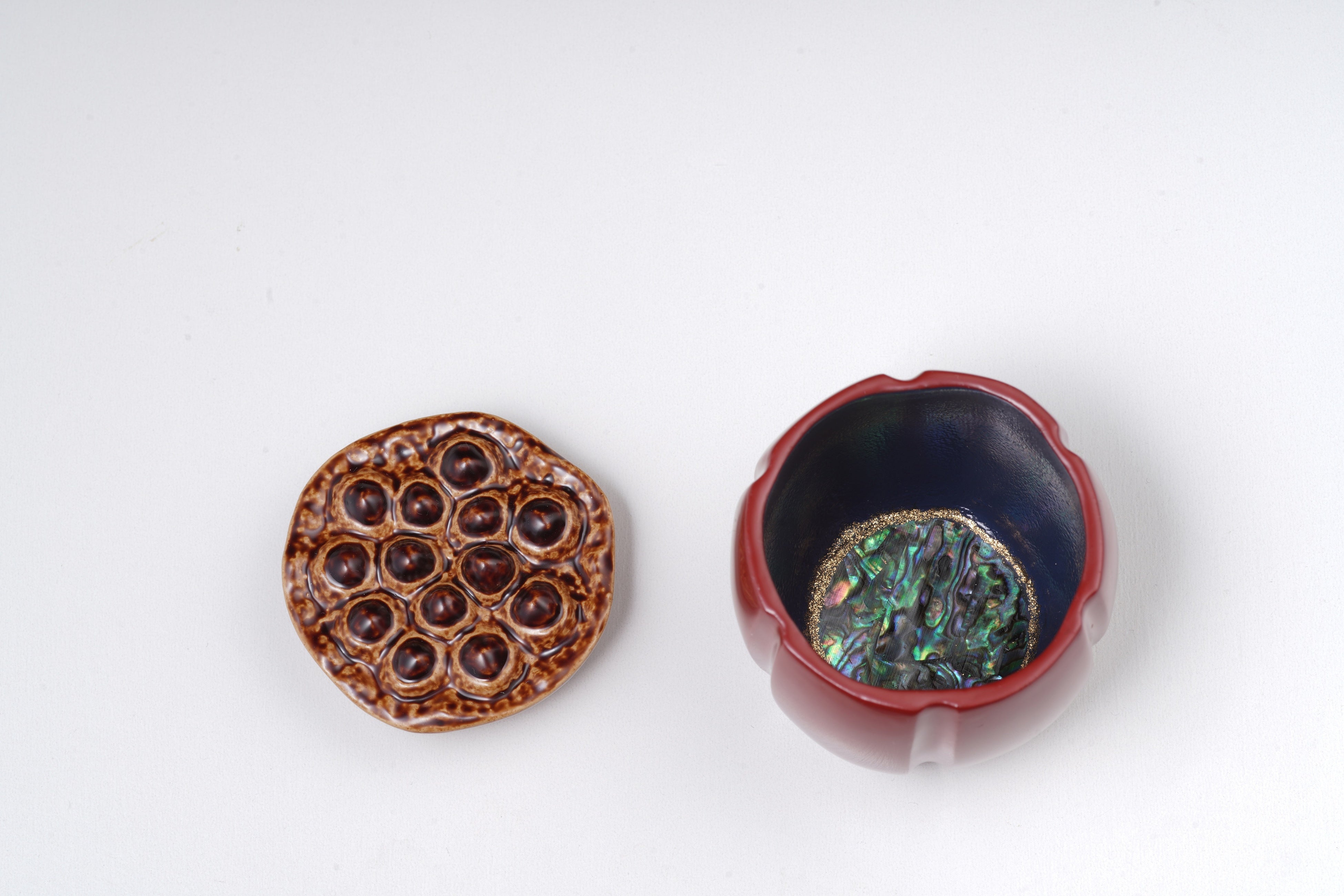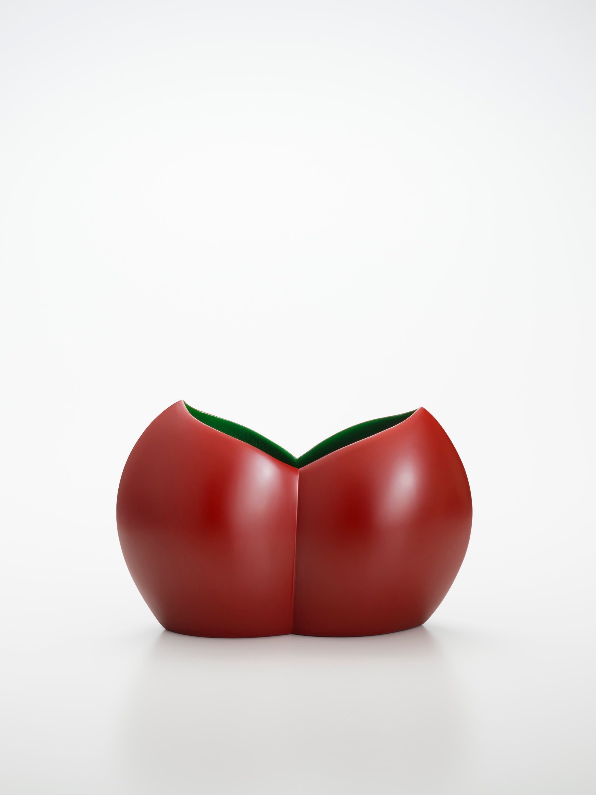 笹井氏は、乾漆技法による造形に朱漆などの色漆を施す塗立仕上げを中心に作品を制作。果実や草花、着物の重ねや結び、雲や太陽など、自然や文化的モチーフから着想を得ている。鮮やかな色彩と柔らかな稜線が織りなす作品は、愛らしさと堂々たる存在感を併せ持ち、生命の喜びを鮮烈に表現する。伝統技法への深い共感を基盤に、現代的な視点を重ね合わせることで、独自の漆芸世界を切り拓いている。