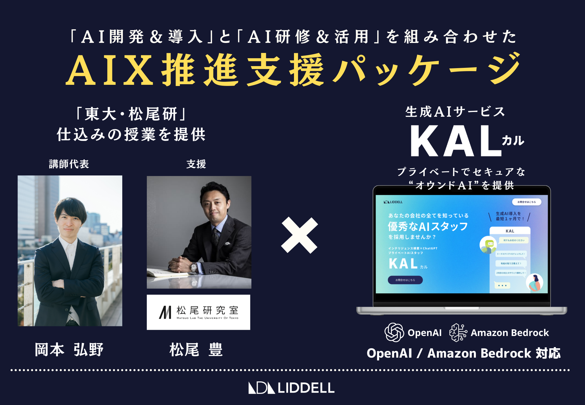 この度、東京大学松尾研究室発のAIスタートアップ企業、株式会社パンハウスが有する実践的経験に基づく、即効性のある講義設計と、リデルの生成AIカスタマイズサービス「KAL(カル)」の実用性のあるソリューションやノウハウを掛け合わせ、「AIX推進支援パッケージ」について協業し提供を開始いたしました。