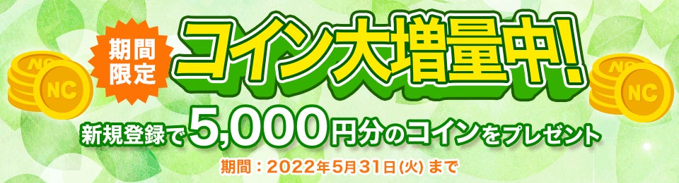 期間中に新規会員登録をしていただくと、通常1,000円分のところ、今なら5,000円分の入会特典コインをプレゼントいたします。このお得な機会にぜひネイティブキャンプをご利用ください。