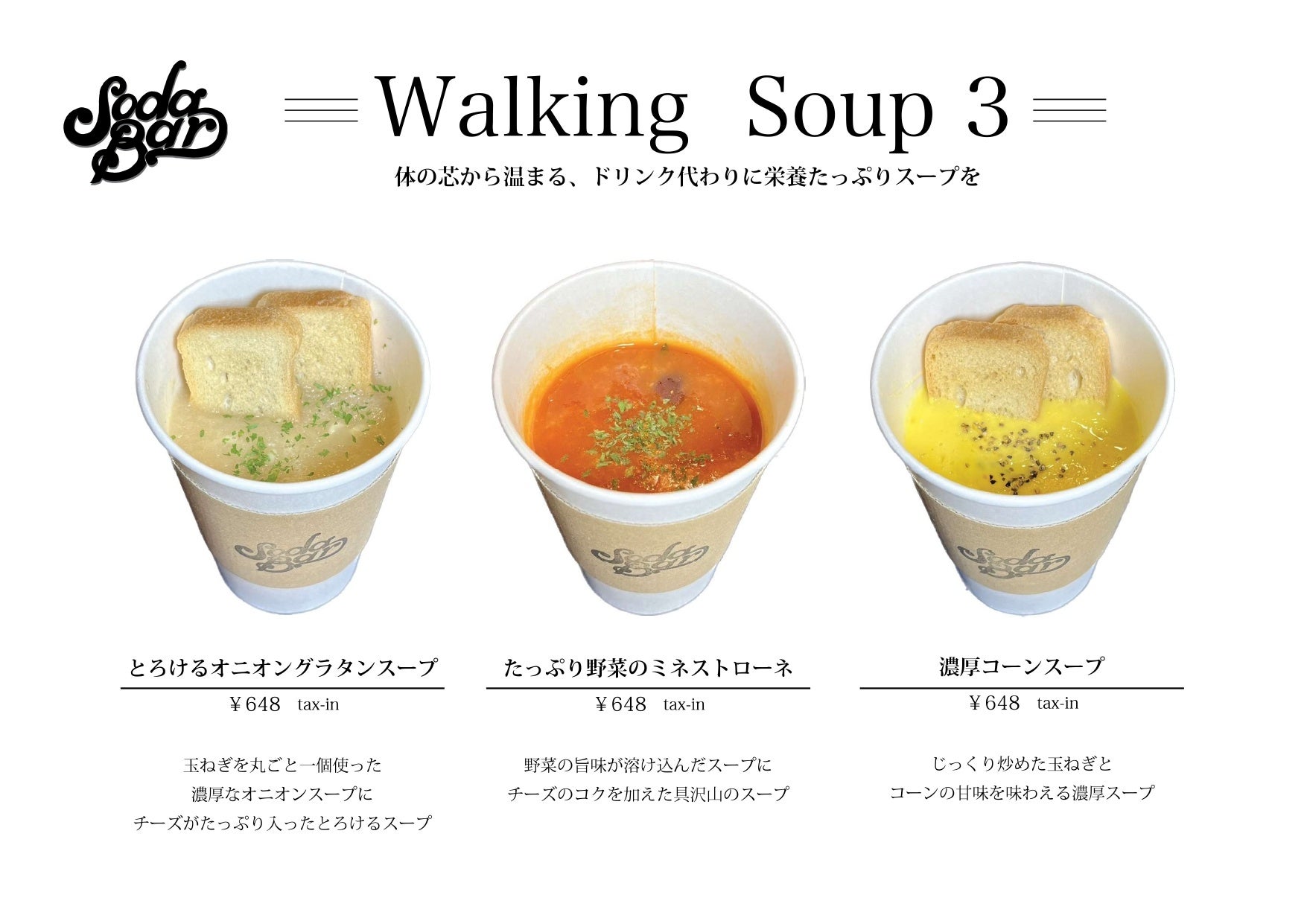 ※SODA BAR横浜ではドリンクカップの容器ではなくスープカップの容器にて同様のスープメニューを提供