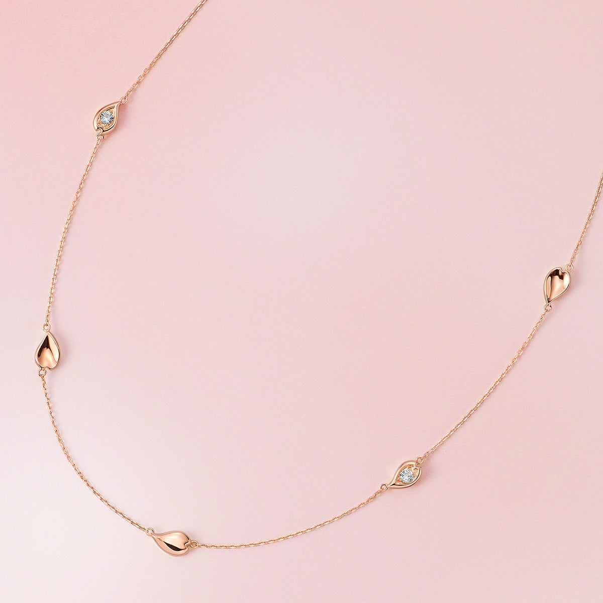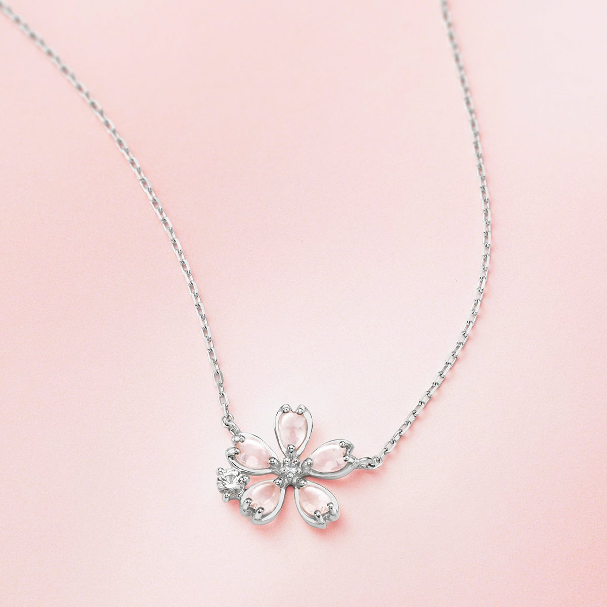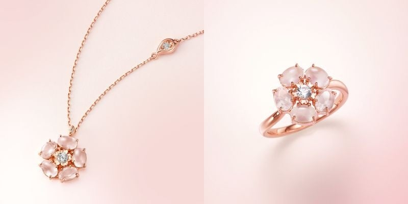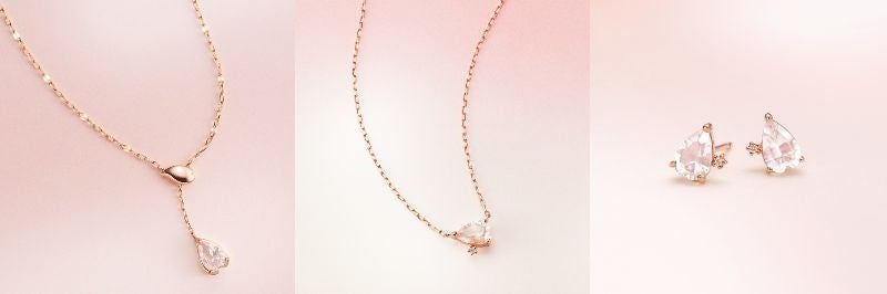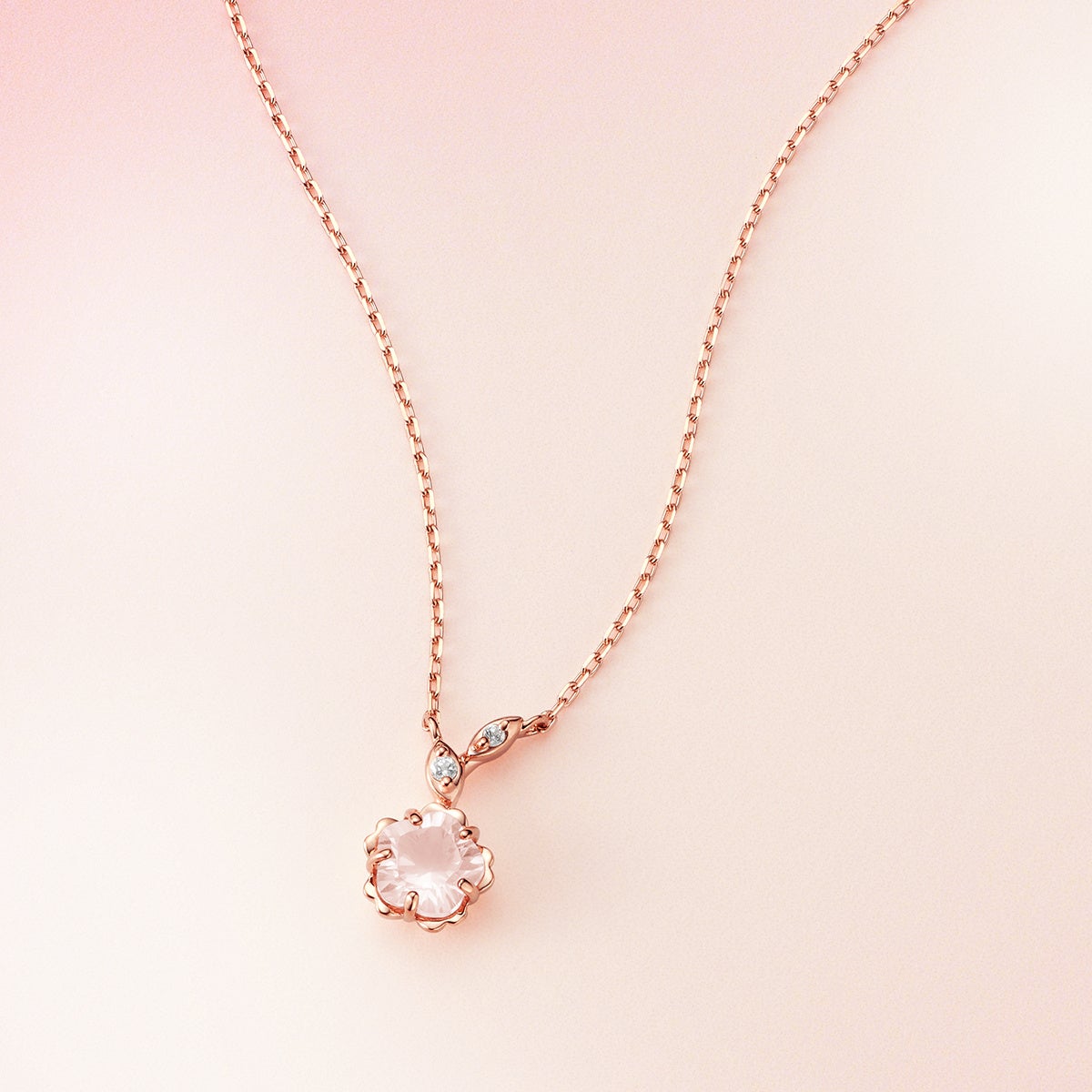 桜の花びらが舞い降りるように、やさしく光を映すコレクション。ローズクォーツのやわらかな光彩が、春の空気をまといながら肌になじみます。ネックレスはチェーンを外してペンダントトップとしても使える2WAY仕様で、シーンを選ばず活躍します。どのアイテムにも、やわらかさと品のある華やかさを宿し、春の訪れをそっと知らせてくれる存在に。日常に寄り添いながらも、どこか心をときめかせるような、特別なジュエリー。咲き誇る桜の季節を、ジュエリーというかたちで手元に閉じ込めて。春のきらめきとともに、記憶に残る一日を彩ります。