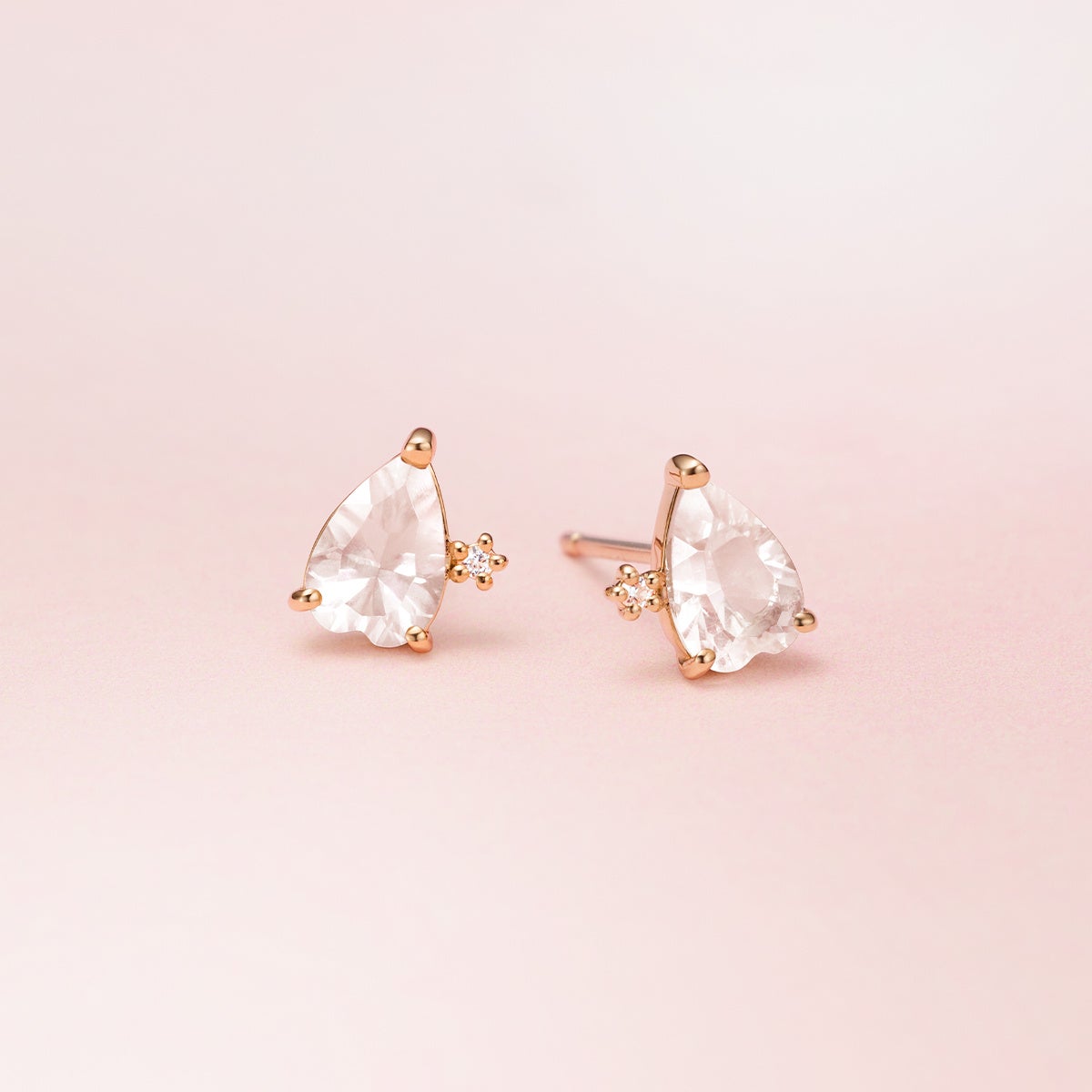 K18PG Pierced Earrings / Rose Quartz / Diamond \59,400