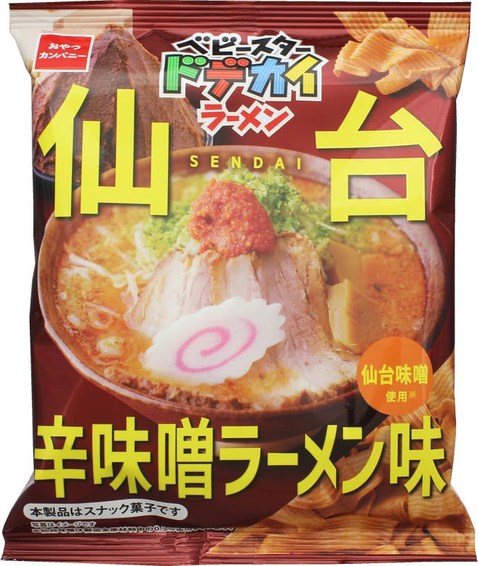宮城県発祥のご当地ラーメン「仙台辛味噌ラーメン」をイメージした『ベビースタードデカイラーメン(仙台辛味噌ラーメン味)』は、仙台味噌を使用した麺の生地に、豚肉や野菜、唐辛子を加えることで、味わい深い仙台味噌の風味と旨味とともにあと引く辛さがクセになる味わいに仕上げました。