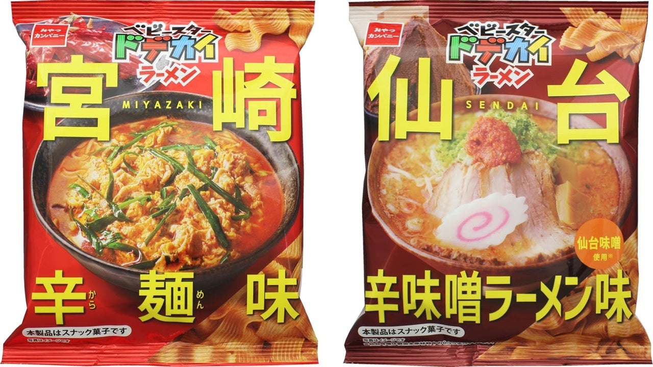 ■”辛さ”が特徴のご当地ラーメンを手軽に食べ比べ!「仙台辛味噌ラーメン味」「宮崎辛麺味」のベビースター