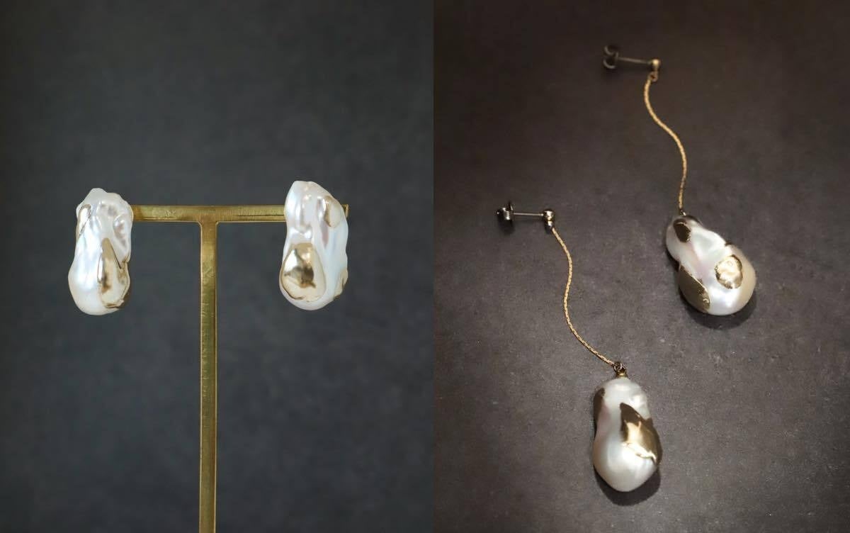 - (左)White Oyster Earring&Pierce- Vintage Gold (品番:WDP-ER-01)