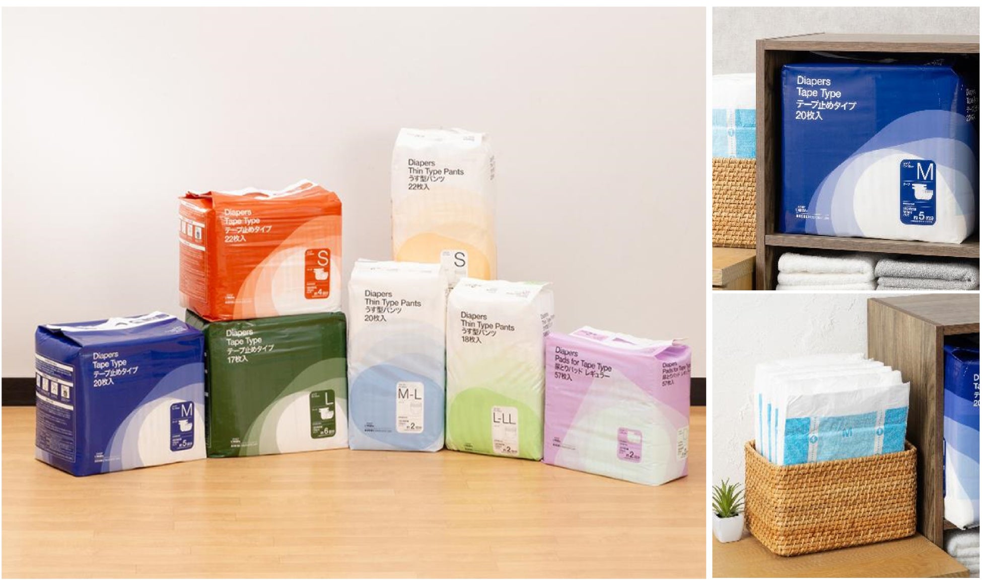 介護分野で代表商品といえる大人用おむつは2015年からオリジナル商品を展開してきましたが、2025年問題と言われる後期高齢者が爆発的に増加しはじめる時期を見据え、介護施設の介護職員、在宅介護されている一般の方へのアンケート・インタビュー・施設訪問によるお客様の声を参考にした商品リニューアルを計画しました。