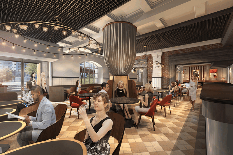 店内には現代美術家・長島伊織氏のアートを常設。料理はバルニバービグループ総料理長・大筆による洋食ビストロを軸に、「La Lucciola(ラ ルッチョラ)」鈴木浩治氏をはじめとする大阪を代表するスターシェフとの定期的な料理監修やコラボレーションを展開します。歴史ある公会堂に新たな1ページを刻む、新店舗の誕生です。