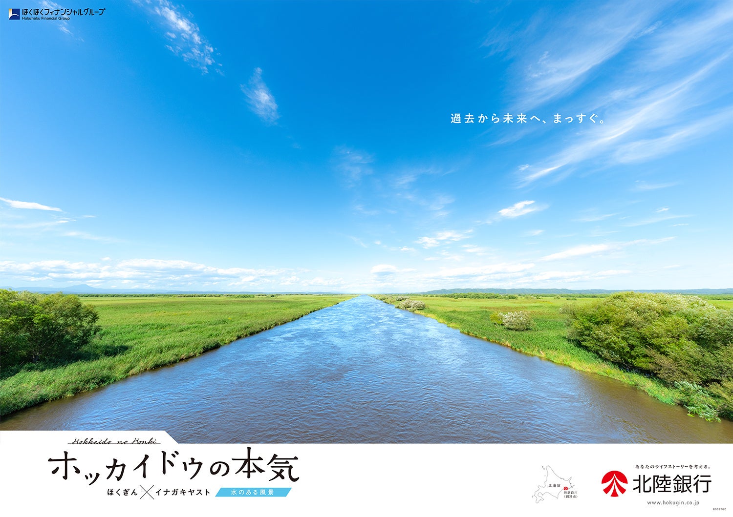2023年度は「水のある風景」というテーマのもと、各県の「水」に焦点をあてた作品を北陸銀行ポスター等の広告媒体で発信しています。今回は、福井県の「三方五湖」と北海道の「新釧路川」です。穏やかな湖の景色がゆったりとした時間を感じる作品と、まっすぐ伸びる川と広大な大地が力強さを感じさせる作品です。