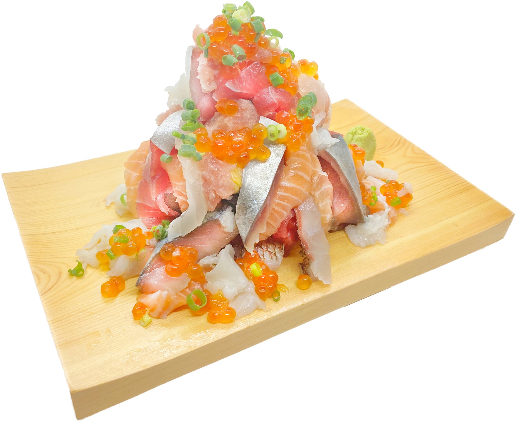 いくらやまぐろをこぼれるまで盛り合わせた贅沢な「海鮮なだれ