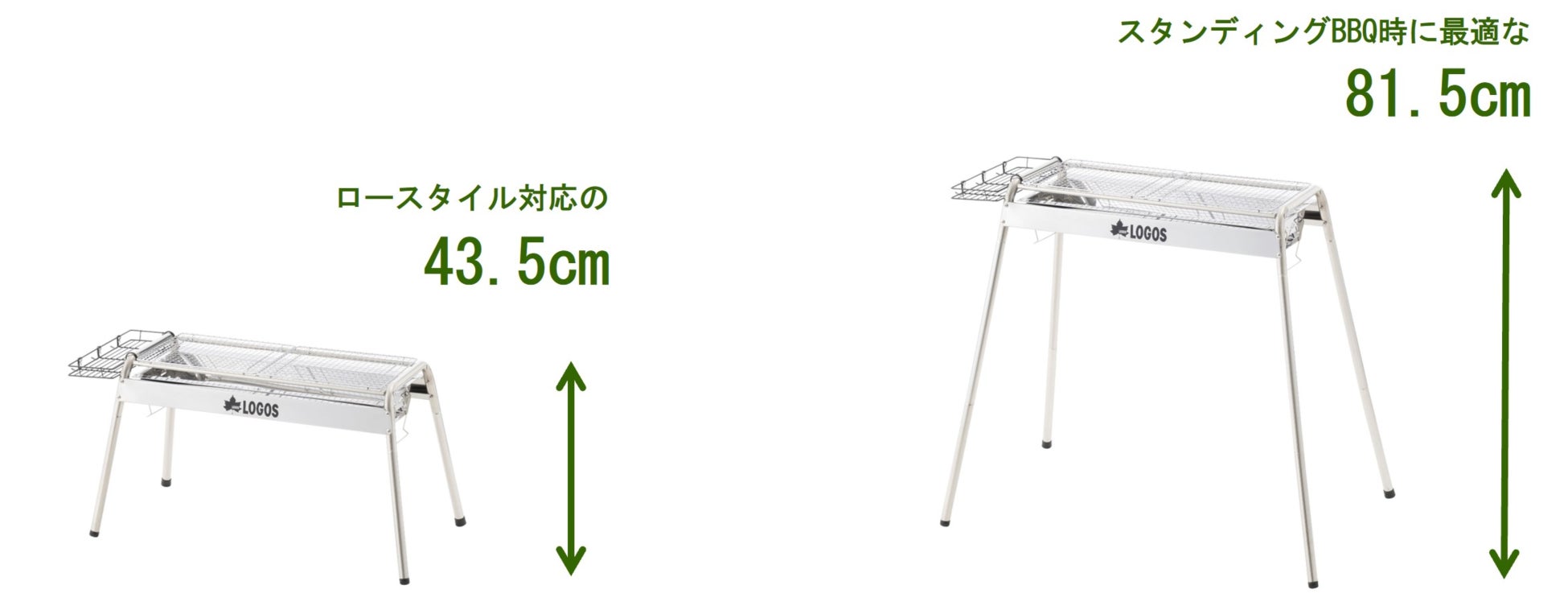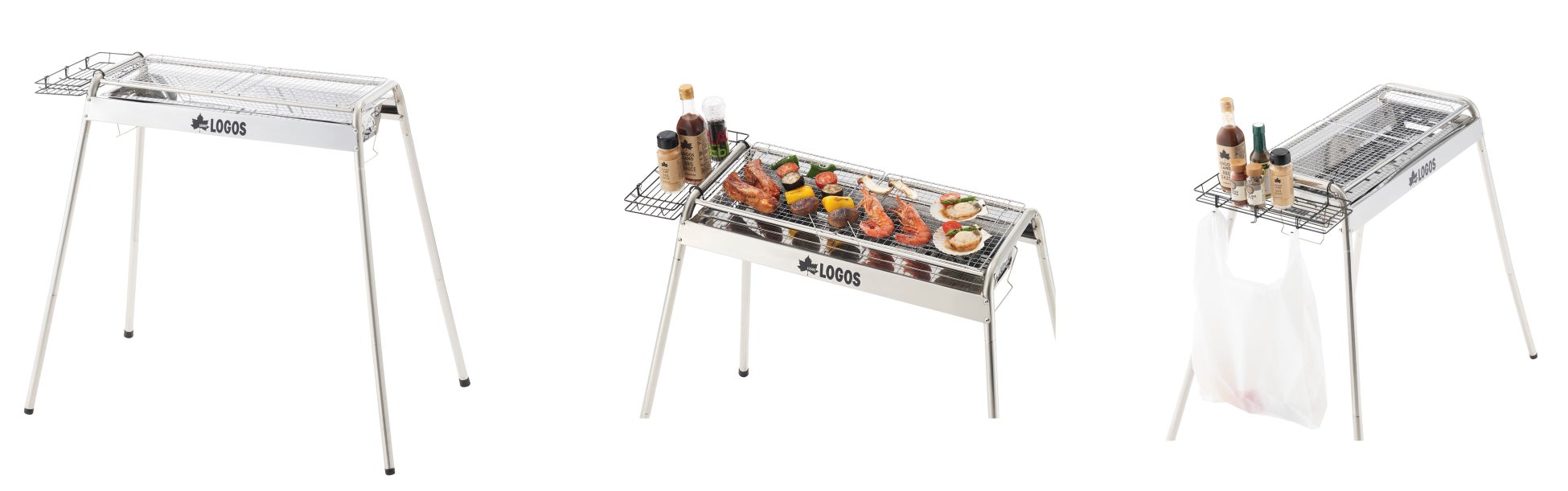 高さが2段階に調整可能で、調理や片付けの際に役立つアイテムが揃った「eco-logosave スリムチューブグリルL-BB・コンプリート」を、アウトドアライフでぜひともご活用ください。